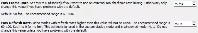 如果俄语界面出现问题,请关闭“Improved Fonts”,该选项会导致字体显示异常。在“Sneaky Upgrade Display”中,只需将最大帧率和最大帧率调整为您的设备适用值。调整至您感觉舒适的数值即可(推荐帧率为60-100)。