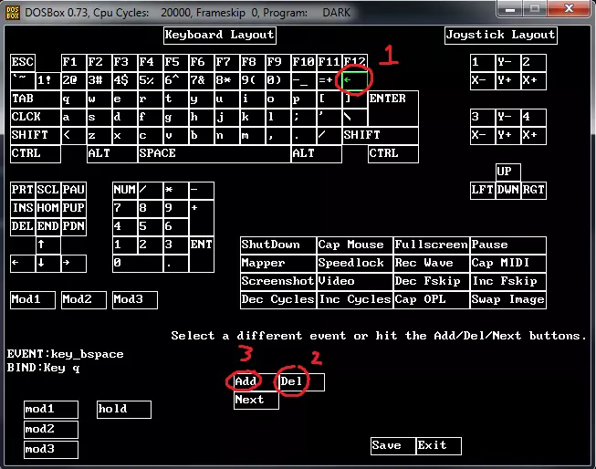 如果你想要反转鼠标,将前两行切换为: PageUp = delta(Mouse.DirectInputY) < -1 PageDown = delta(Mouse.DirectInputY) > 1 如果你不希望垂直瞄准那么灵敏,将1替换为更大的数字,例如: PageDown = delta(Mouse.DirectInputY) < -5 PageUp = delta(Mouse.DirectInputY) > 5 如果你想要武器滚动方向相反,将最后两行替换为: Key.F9 = Mouse.WheelDown // 用滚轮切换武器 Key.F10 = Mouse.WheelUp 点击“另存为”保存脚本。之后你可以通过“最近”或“打开”菜单选项在下次游玩时重新加载相同的脚本。按下“运行”按钮来运行脚本,然后启动游戏! 键盘改进 - 简短版打开记事本并粘贴以下内容: hand_shutdown "key 290 mod1" hand_capmouse "key 291 mod1" hand_fullscr "key 13 mod2" hand_pause "key 19 mod2" hand_mapper "key 282 mod1" hand_speedlock "key 293 mod2" hand_recwave "key 287 mod1" hand_caprawmidi "key 289 mod1 mod2" hand_scrshot "key 286 mod1" hand_video "key 286 mod1 mod2" hand_decfskip "key 288 mod1" hand_incfskip "key 289 mod1" hand_cycledown "key 292 mod1" hand_cycleup "key 293 mod1" hand_caprawopl "key 288 mod1 mod2" hand_swapimg "key 285 mod1" key_esc "key 27" key_f1 "key 112" "key 282" key_f2 "key 103" "key 283" key_f3 "key 105" "key 284" "key 99" key_f4 "key 109" "key 285" key_f5 "key 102" "key 286" key_f6 "key 287" key_f7 "key 288" key_f8 "key 104" "key 289" key_f9 "key 290" key_f10 "key 291" "key 291" key_f11 "key 292" key_f12"按键 293" 按键_重音键 "按键 96" 按键_1 "按键 49" 按键_2 "按键 50" 按键_3 "按键 51" 按键_4 "按键 52" 按键_5 "按键 53" 按键_6 "按键 54" 按键_7 "按键 55" 按键_8 "按键 56" 按键_9 "按键 57" 按键_0 "按键 48" 按键_减号 "按键 45" 按键_等号 "按键 61" 按键_退格键 "按键 113" 按键_Tab键 "按键 9" 按键_Q "按键 113" 按键_W "按键 119" 按键_E "按键 101" 按键_R "按键 114" 按键_T "按键 116" 按键_Y "按键 121" 按键_U "按键 117" 按键_I "按键 105" 按键_O "按键 111" 按键_P "按键 112" 按键_左方括号 "按键 91" 按键_右方括号 "按键 93" 按键_回车键 "按键 13" 按键_大写锁定键 "按键 301" 按键_A "按键 97" 按键_S "按键 115" 按键_D "按键 100" 按键_F "按键 102" 按键_G "按键 103" 按键_H "按键 104" 按键_J "按键 106" 按键_K "按键 107" 按键_L "按键 108" 按键_分号 "按键 59" 按键_单引号 "按键 39" 按键_反斜杠 "按键 92" 按键_左Shift键 "按键 304" 按键_小于号 "按键 60" 按键_Z "按键 122" 按键_X "按键 120" 按键_C "按键 306"键_v "键 118" 键_b "键 98" 键_n "键 110" 键_m "键 109" 键_逗号 "键 44" 键_句号 "键 46" 键_斜杠 "键 47" 键_右Shift "键 303" 键_左Ctrl 键_左Alt "键 308" 键_空格 "键 32" 键_右Alt "键 307" 键_右Ctrl "键 305" 键_打印屏幕 "键 316" 键_滚动锁定 "键 302" 键_暂停 "键 19" 键_插入 "键 277" 键_主页 "键 278" 键_上一页 "键 280" 键_删除 "键 127" 键_结束 "键 279" 键_下一页 "键 281" 键_上 "键 273" 键_左 "键 276" 键_下 "键 274" 键_右 "键 275" 键_数字锁定 "键 300" 键_小键盘_除 "键 267" 键_小键盘_乘 "键 268" 键_小键盘_减 "键 269" 键_小键盘_7 "键 263" 键_小键盘_8 "键 264" 键_小键盘_9 "键 265" 键_小键盘_加 "键 270" 键_小键盘_4 "键 260" 键_小键盘_5 "键 8" "键 118" "键 261" 键_小键盘_6 "键 262" 键_小键盘_1 "键 257" 键_小键盘_2 "键 258" 键_小键盘_3 "键259" key_kp_enter "key 271" key_kp_0 "key 256" key_kp_period "key 266" jbutton_0_0 jbutton_0_1 jaxis_0_1- jaxis_0_1+ jaxis_0_0- jaxis_0_0+ jbutton_0_2 jbutton_0_3 jbutton_1_0 jbutton_1_1 jaxis_0_2- jaxis_0_2+ jaxis_0_3- jaxis_0_3+ jaxis_1_0- jaxis_1_0+ jaxis_1_1- jaxis_1_1+ jbutton_0_4 jbutton_0_5 jhat_0_0_0 jhat_0_0_3 jhat_0_0_2 jhat_0_0_1 mod_1 "key 306" "key 305" mod_2 "key 308" "key 307" mod_3 将其另存为mapper.txt到C: Program Files (x86) Steam steamapps common dark forces(或你的Steam目录位置,如果不在Program Files)。如果已有mapper.txt文件,建议先备份。简单的备份方法是将原文件重命名为mapper.txt.bak。键盘改进 - 详细版此解决方案使用DosBOX按键映射工具。游戏运行时,按下Ctrl-F1打开DOSBox按键映射器。 以下是我的建议修改方案,这些信息能帮助你自行尝试并根据需求进行不同调整。 在按键映射器中点击【退格键】(图标为向左箭头,位于键盘退格键对应的位置)。 点击映射器上的【删除键】。 点击映射器中的【添加】。 在键盘上按下【Q】键。 现在【Q键】可用于快速切换,而【退格键】将无任何功能。