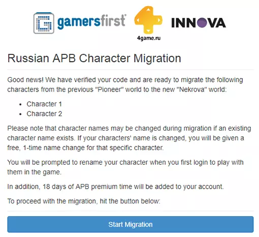 访问相关网站。使用您的GamersFirst账户登录或创建新账户。点击开始迁移。注意:这是最终迁移!迁移后,无法恢复。步骤2