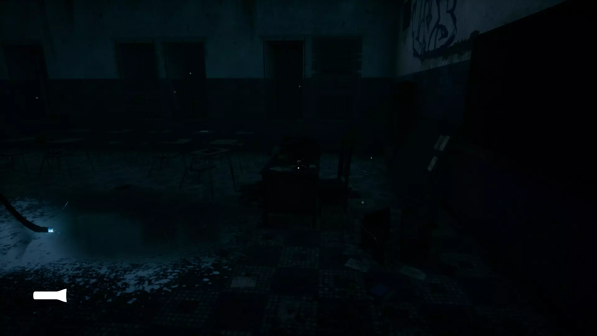两台相机。沿着大厅向左走,阅读左侧的便条,然后进入右侧的门。相机1在讲桌上,经过讲桌后的柜子上有一把钥匙,窗边的桌子上有一张便条,教室后方的桌子上有电池。务必避开中央的水洼,否则会触电(不过不会丢失任何进度)。回到大厅,向右转,进入左侧的最后一扇门。水槽上有电池,相机2在其中一个开着的隔间的马桶上。进入左侧的另一扇门。前方的桌子上有一张便条,一张桌子上有一组电池,前往这间教室的后方将开启下一部分。前往章节开始时你右侧的大厅,阅读右侧的便条,然后与左侧的家具互动。穿过洞口,拿起架子上的电池,阅读便条,再拿起桌上的钥匙。返回后,打开你左侧的门以开始第三章。 第三章