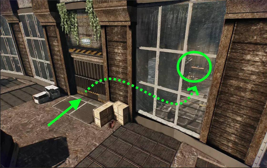 8. PC-翠绿 在带有破损屋顶的建筑内,靠近半开的门的角落里。 旧版(2016年)截图: