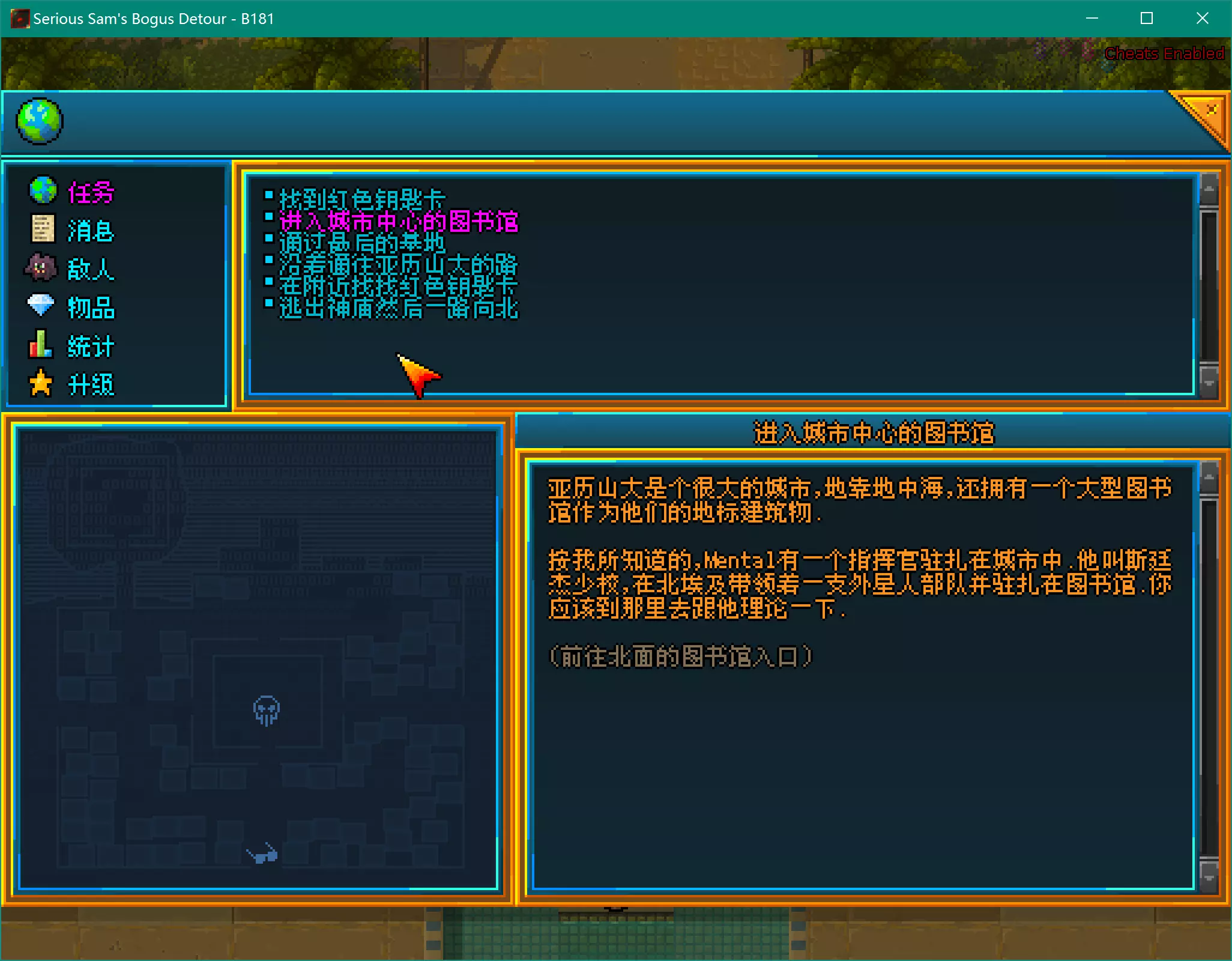 英雄萨姆-暗渡陈仓 汉化补丁 由于官方游戏不支持汉字字体,我们重新制作了字体文件。 汉化进度:99.9% 禁止转载! 汉化介绍 ▼先放效果图▼: