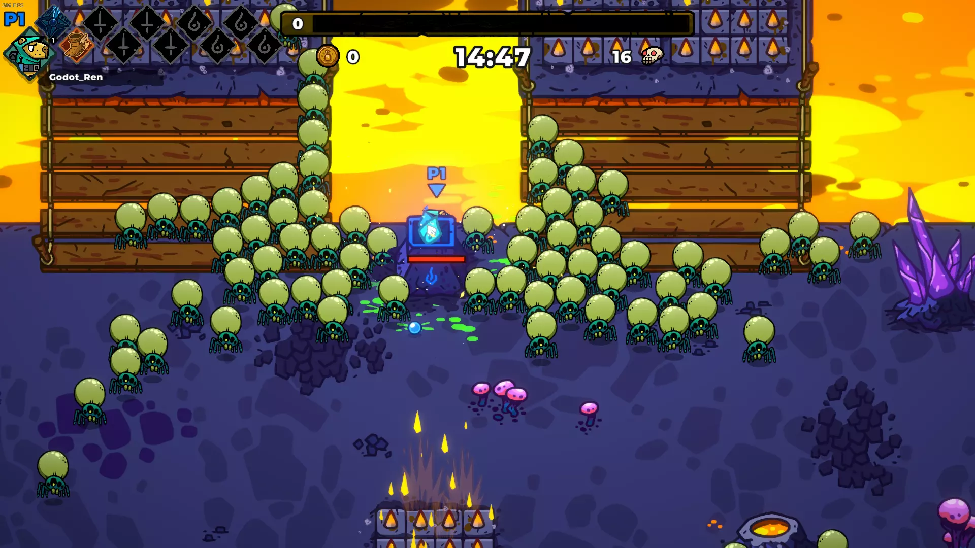 请允许我介绍本游戏的第一个被动技能。获得后请第一时间将其点满,它能在一局游戏内为你提供100%(二级数值)的攻击力加成。相比之下,三级的金牙在游戏内最高只能提供50%的攻击力加成,因此这个被动技能的效果确实非常强力。 关于触发条件,需要说明的是,你角色自带的武器和快速移动并不属于“主动技能”。这意味着,除非你选择了降低最高等级的模式,否则你大概率能够凑齐4个主动技能和4个被动技能,从而触发这个被称为【无敌的秤】的效果。那么问题来了,怎么活到点满灯和秤呢 战士:乱杀,唯一发愁的就是金牙有协同效应,实在是没什么必要拿两个攻击力加成的被动 刺客:走走位乱杀 德鲁伊:开局伤害略低,尽量找土豆电池或者蜂鸟,我愿称土豆电池为本游戏第一保姆 吟游诗人:走走位乱杀 法师:这个是我觉得开局比较困难的职业之一了,但自从我发现图三它能卡位这件事,就剩下卖血吃经验找土豆电池一件事了 枪手:同上,上年纪了手笨,卡不好主武器cd,卡位置就完了