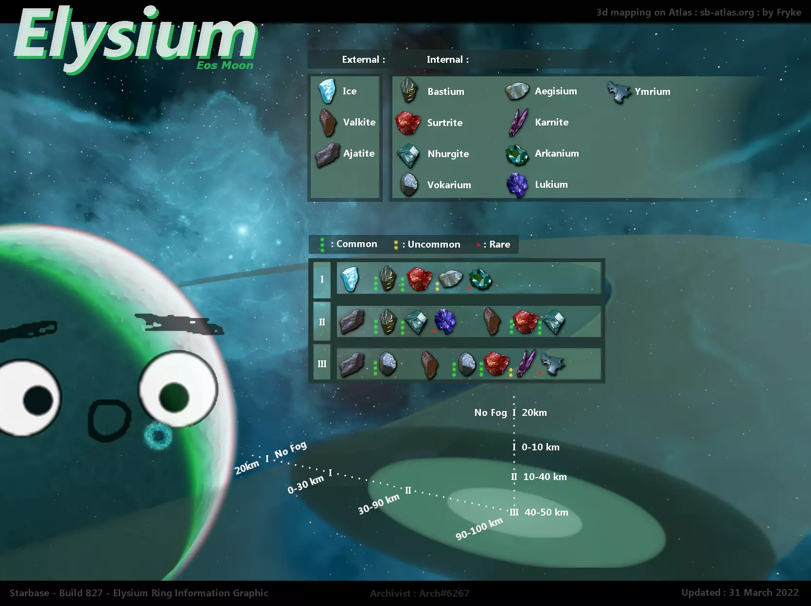 《星舰基地》社区实用资源汇总帖,介绍了论坛【社区资源】页面有大量社区制作的图表和资源,还展示了Eos气态巨行星、Elysium卫星的矿石分布地图,包含不同矿石的稀有度与分布区域,若大家使用Steam指南,将考虑同步更新相关内容。
