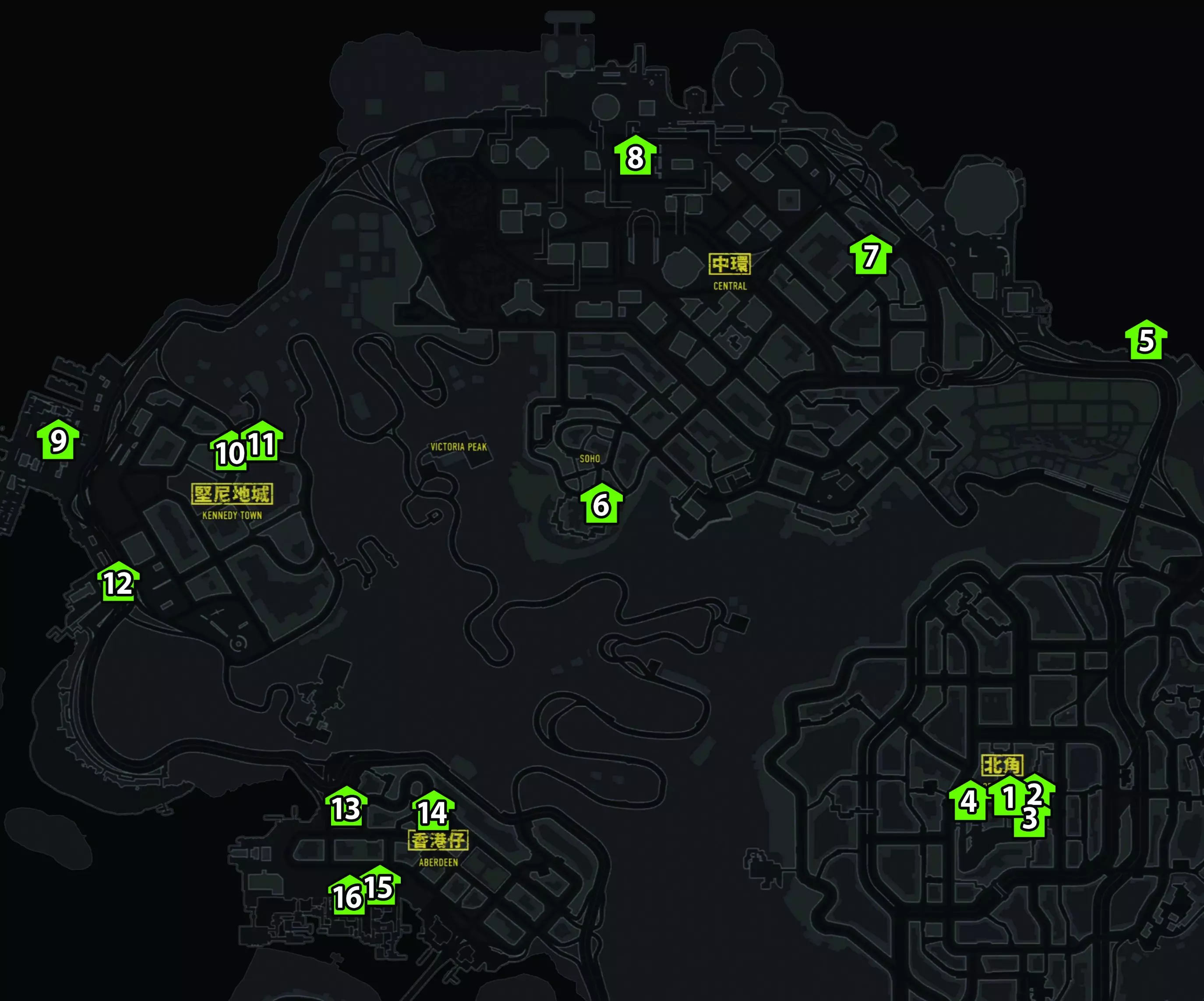 北角 1) 空调。在售卖走私电子产品的帐篷后面的男人处购买。价格:4620游戏币 2) 新床。在其中一个半组装帐篷里的女人处购买。价格:5000游戏币 3) 高级音响系统。在房屋之间的过道处购买。价格:9550游戏币 4) 小鸟。在有笼子的摊位处购买。价格:1200游戏币 市中心 5) 软家具套装。在海滨长廊的棚子下的男孩处购买。在地图上标记位置,开车到地点后,向下开,左转就能看到卖家。价格:14000游戏币 6)咖啡桌和毛毯。前往K吧。走下楼梯,会立即看到一个穿红色衬衫的人。价格:7200游戏币 7)龙纹挂毯。服装店对面有一个购物中心。里面有一个穿黑色衣服的人,在保险箱对面。价格:3000游戏币 8)古董花瓶。在指定地点你需要上楼。建筑名为TorExv(有巨大的红色文字),而且那里还有很多红色旗帜。黑衣女子位于连接大楼两个区域的通道下方。那里有柱子和旋转门。价格:8000游戏币 坚尼地城 9)鱼。就在汽车销售商的正对面,再稍微靠右一点。价格:850游戏币 10)热水浴缸。就在你家出口的正对面。那里也是【毒枭突袭】任务之一的所在地。价格:25000游戏币 11)你家的植物护理。几乎就在同一个地方。从家出发,沿着同一条通道直行,但这次不要前往10号商人所在的位置,继续往前开一点,向右看。有个女人站在大门旁边,就在粉白色房子的右侧。价格:1200游戏币。 12) 瓜诺·尤神像。GPS可能会让你在高速公路上绕圈子,别被误导——步行前往海滨区域。在建筑物的顶部可以看到健康祭坛,神像商人就在这栋建筑附近,不要错过。价格:4000游戏币 阿伯丁 13) 巨型电影海报。从坚尼地城前往阿伯丁时,你抵达后几乎会立刻遇到商人。具体位置在这个交通岔路口:有巨大的蓝色坚尼地城和北角标识。目标人物站在商店橱窗旁。价格:250游戏币 14) 奇怪的雕像。以药店为地标。向南走,第一栋建筑。该建筑有两段楼梯:近处的和远处的(南边的)。沿着南边的楼梯上去,会遇到一个女人价格:12000游戏币 15) 更棒的鸟。又一个鸟类交易点。在港口的货摊中。和第一个一样按格子寻找。价格:3000游戏币 16) 失窃的艺术品。鸟类交易点西边有两栋房子:粉色和蓝色的。蓝色房子后面有目标人物。价格:5200游戏币 地图