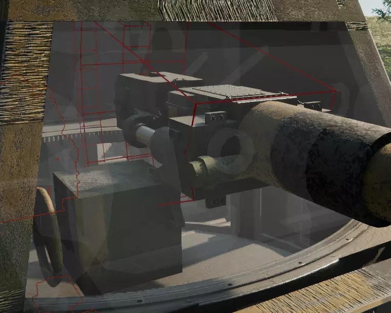 然后右键点击出现问题的挡泥板,在右上角开启/关闭翻转功能。有时中间挡泥板也会出现这种情况,问题侧可能卡在车体内部。 步骤2:火炮 你的火炮会漂浮在坦克侧面。选中火炮并将其移动到炮盾上。如果没有炮盾,就放置一个新的。现在通过右下角的图标或按2键进入内部视角,并放大火炮。如果出现红色像这样