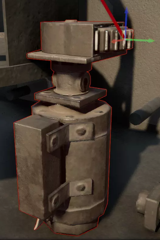 如果显示超出范围且有一条线指向载具中部,请保存并重新加载载具,然后非常轻微地移动车轮的任何部分。 步骤4:旋转电机、炮塔座圈和方向盘 选择炮塔旋转电机并将其移至靠近炮塔座圈的位置,它看起来是这样的。