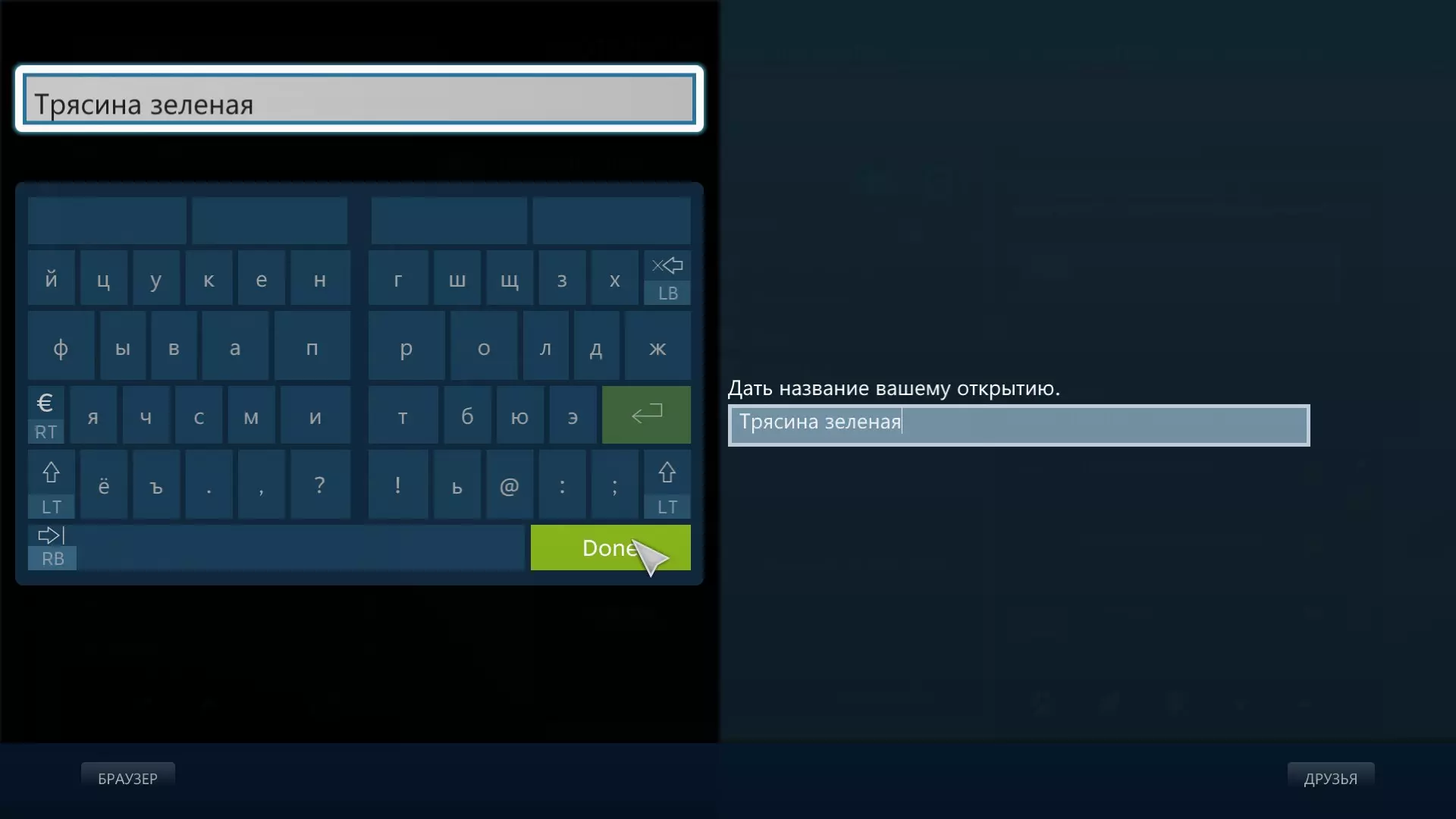 游戏官方并不支持西里尔字母,但我偶然发现了如何用自己的语言(对我来说是俄语)输入名称。方法非常简单。 引言。 在寻找提升游戏帧率的方法时,我遇到了一种解决问题的方案。具体来说,就是通过Steam的“大屏幕模式”启动游戏。这是否对帧率有帮助我无法确定,但我发现了一件事。在重命名发现物或设备等所有可输入文本的地方,会出现虚拟键盘。在标准模式下启动游戏时,我们只能使用英文的拉丁字母或音译输入。虚拟键盘能为我们带来什么呢? 以“大屏幕模式”启动游戏 操作很简单——将Steam切换至“大屏幕模式”(路径:视图)。然后从库中启动游戏,在我们的例子中是《无人深空》。开始游戏即可。使用虚拟键盘。 在Steam中以“大屏幕模式”启动游戏时,游戏内会出现虚拟键盘。例如,在加载或打开需要重命名的内容时(按X键)。