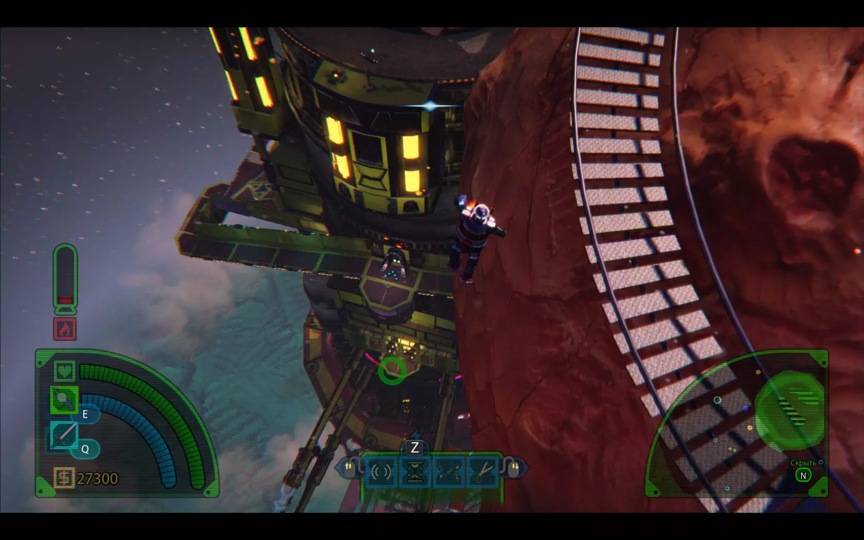 我们跳起来瞄准平台边缘,着陆后放慢扇叶速度,然后跳进塔内,里面将有另一个线圈等着我们。