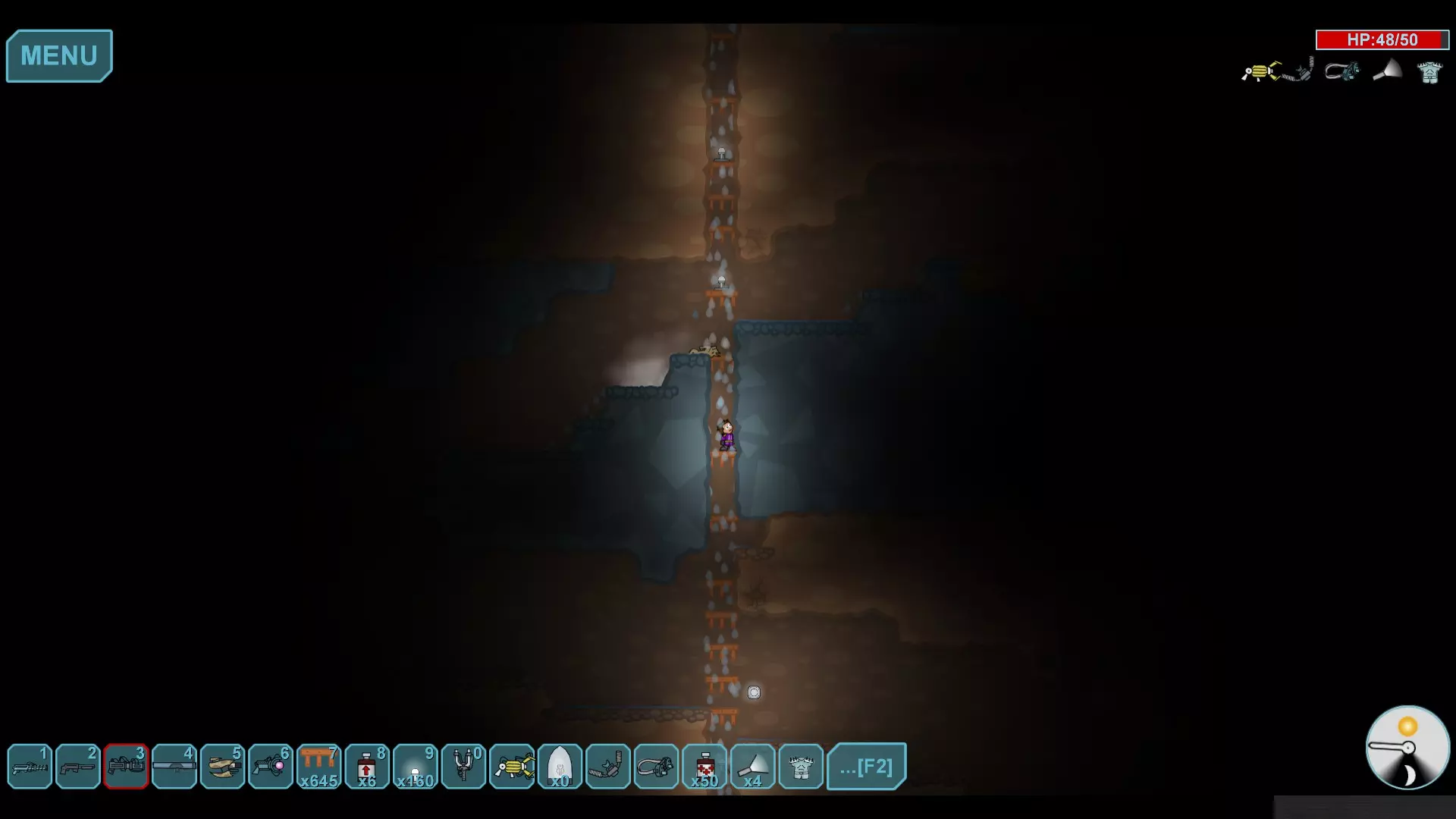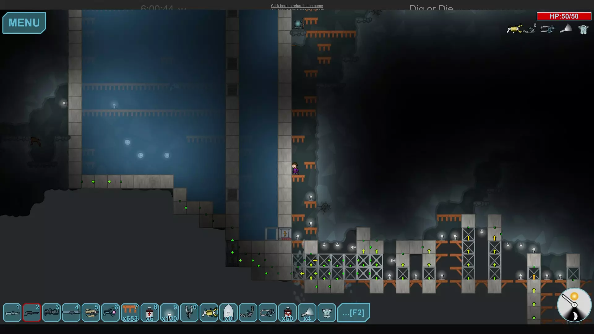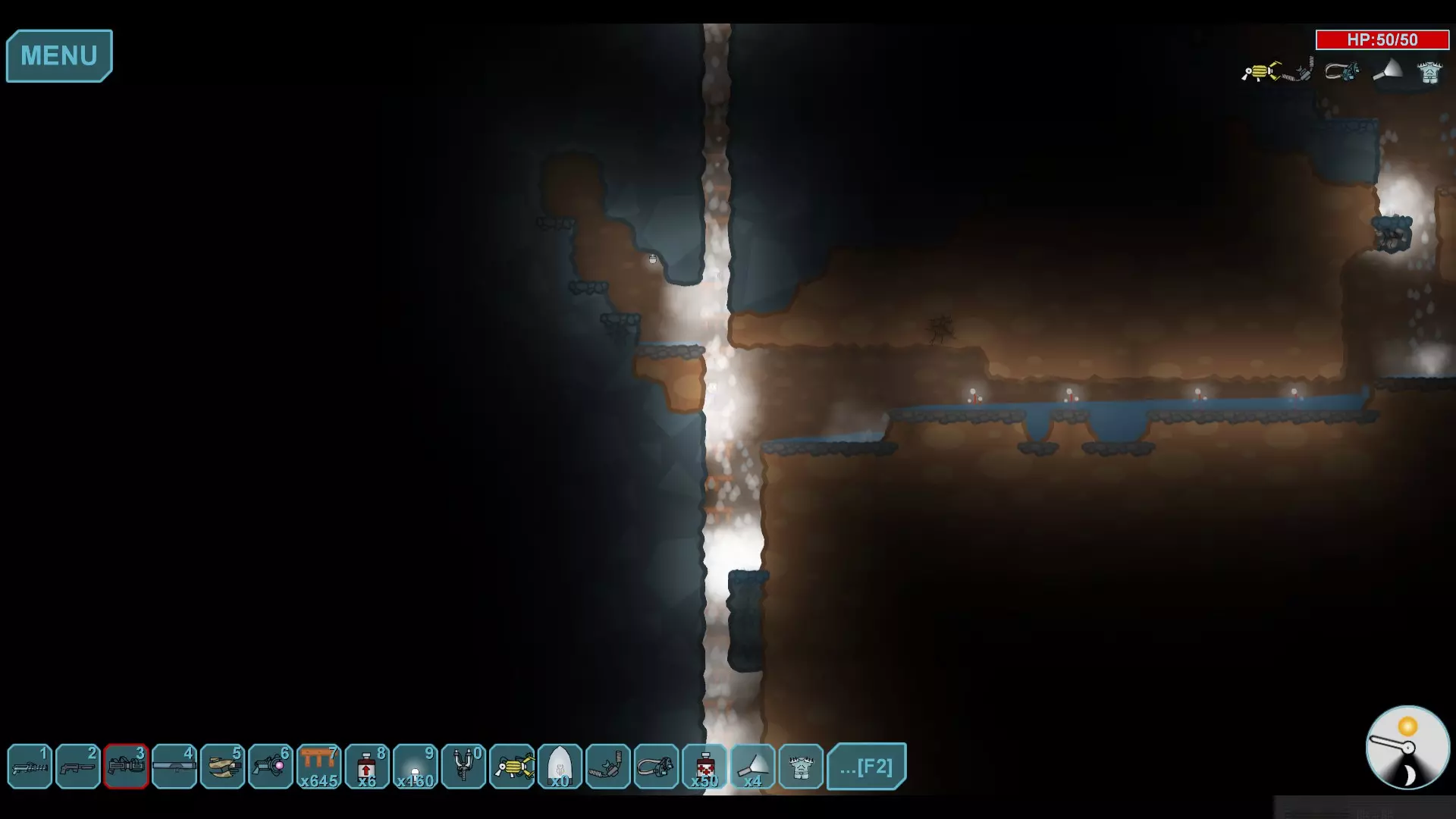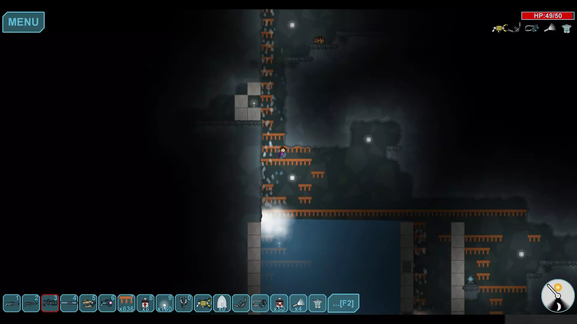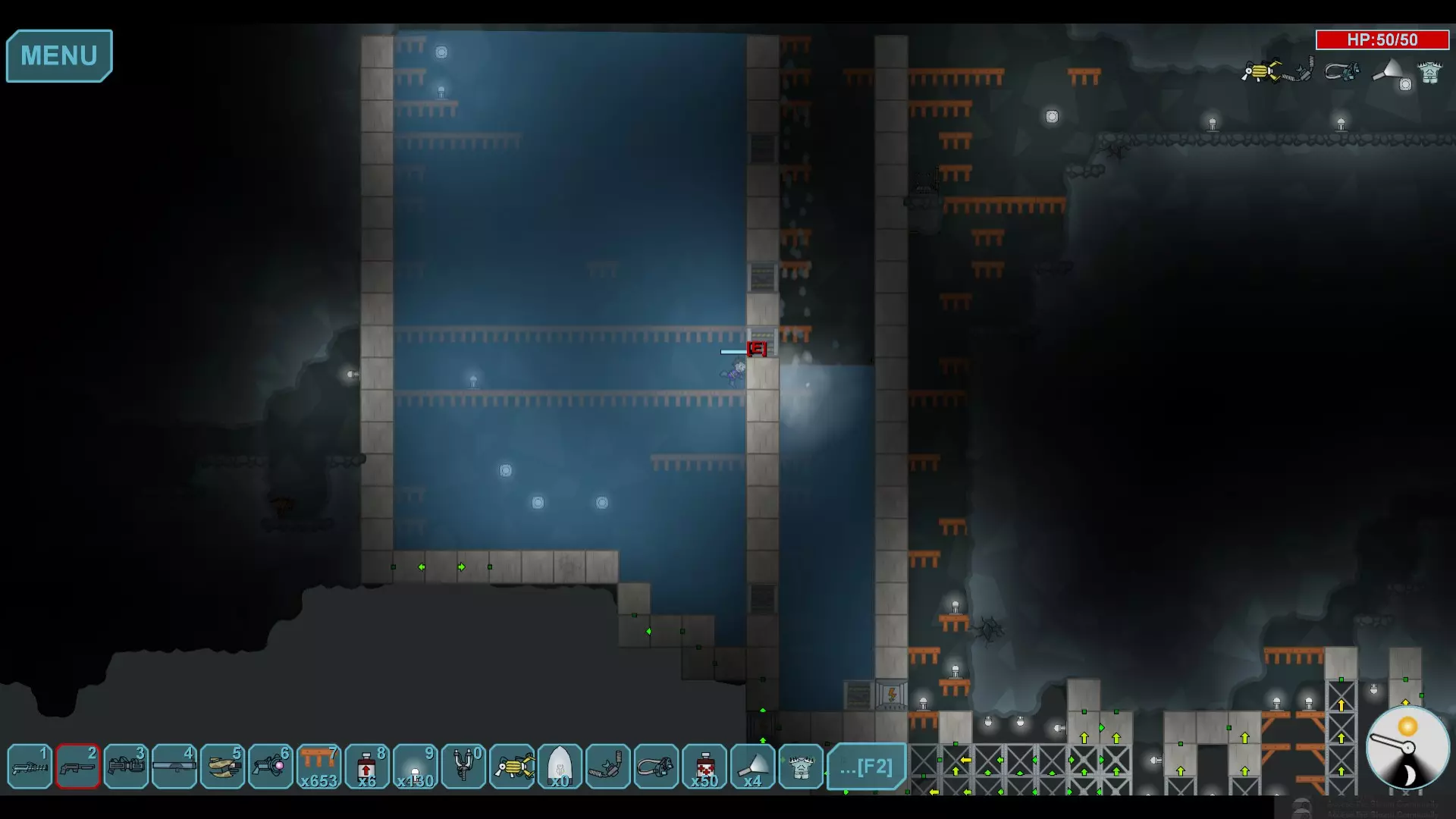 水晶巢穴 水下区域的技巧相当简单,你只需向下挖掘,直到能够用强化门像图片中那样阻断水流。你需要将传送器放置在靠近门的位置(别忘了布设电线),这样你就能打开门,让水流入,迅速关闭门,然后在能量耗尽前使用传送器。这能确保水晶不会持续重生,你也不必频繁费力地开采它们。