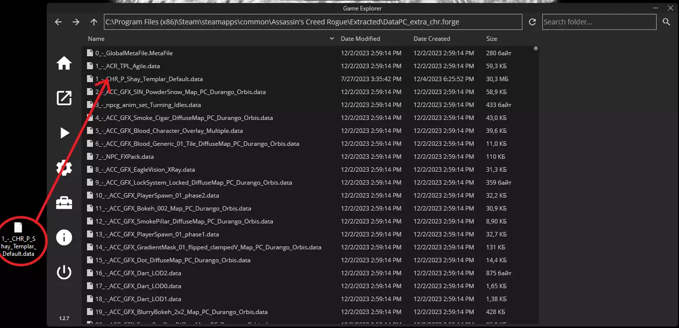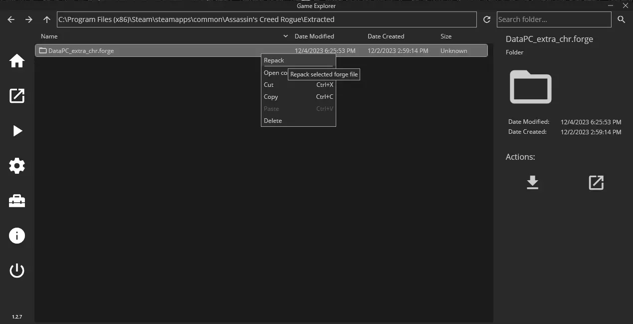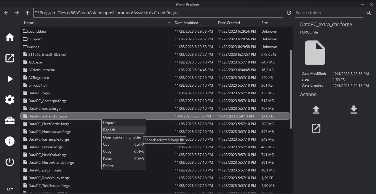 接下来,找到名为“DataPC_extra_chr.forge”的文件,点击“Repack”按钮进行解压。