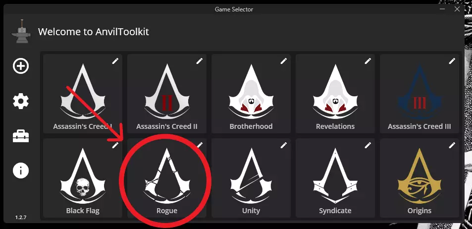 解压mod和工具。 运行AnvillToolkit。 在打开的窗口中选择【刺客信条:叛变】。
