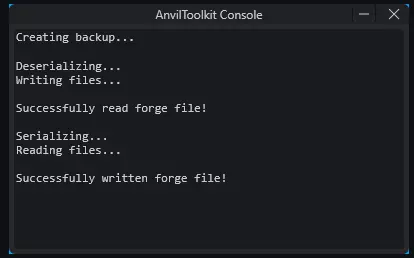 等待AnvilToolkit控制台提示forge文件已成功写入。