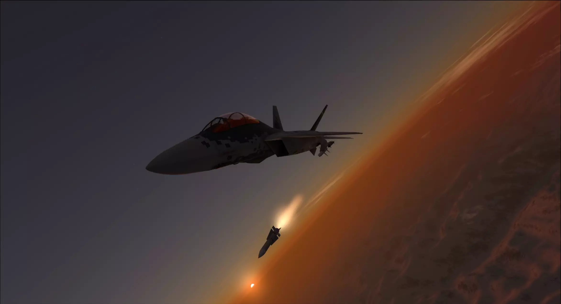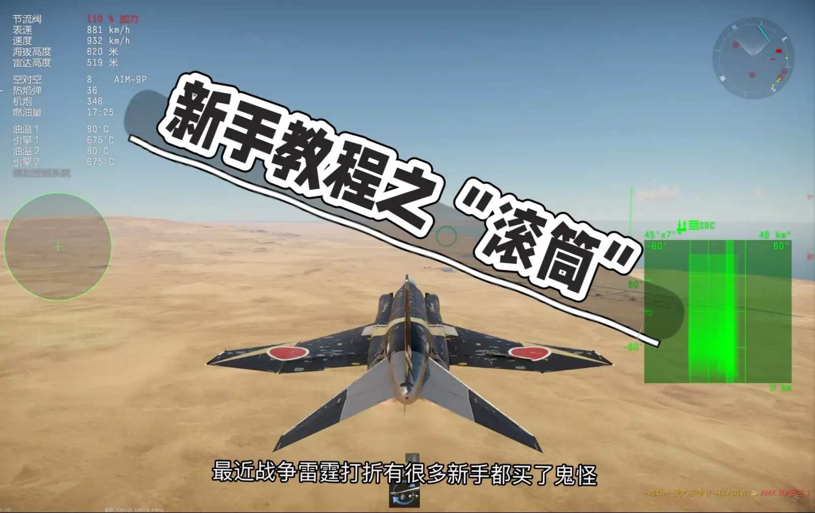 地形遮蔽 雷达无法穿透山脉,导弹也无法飞越山脉。通过将巨大的岩石置于你和敌人之间,你会变得更难被击中,也更难被发现!有效的地形遮蔽能降低你被导弹锁定的可能性,更不用说被击中了。这无疑是躲避导弹的最佳方法之一。我曾亲眼见过单独的岩石为我挡下导弹。我再怎么强调位置优越的山脉或山谷的作用都不为过。 notch机动(原词notching) notch机动的原理是融入地面背景。雷达通过发射光束来“探测”目标,任何被光束捕捉到的物体都能被雷达发现。当目标飞机附近没有其他物体时,这种探测方式效果很好。雷达发出脉冲,然后接收反射回来的光束。这种“回波”的形状使雷达能够识别它所探测的是何种飞机。 然而,当你俯视地面时,雷达会捕捉到所有岩石和树木的信号。所有这些地面杂波会产生大量干扰。雷达区分飞机和树木的方法之一是通过运动状态。由于地面相对于扫描雷达而言,整体会朝着同一方向移动,任何不随地面移动的物体都很可能是飞机。通过与地面相对于扫描飞机保持相同的移动速度,你就能融入地面产生的雷达杂波中。 “ notch”机动是一种非常简单的动作,能够让你从雷达视图中消失。虽然单靠它本身不足以摆脱锁定,但在尝试摆脱锁定时,处于这个位置通常是正确的做法。 规避锁定的第一个要求是位于目标飞机下方。理想情况下,你应该注意发动机进气口吸入的石块,位置越低越好。第二个要求是与扫描的飞机保持侧向飞行(相对角度为90°)。最简单的对准方法是使用雷达告警接收机,将你想要规避锁定的雷达告警接收机图标置于3点钟或9点钟方向。 需要注意的是,箔条仅对摆脱锁定有效,对边跟踪边扫描模式无效。不使用箔条进行规避锁定可能足以摆脱边跟踪边扫描模式,如果不行,请参考地形遮蔽。 转向规避:转向规避的原理是将目标置于雷达可跟踪范围的最左或最右边缘。通过这种操作,你可以迫使敌方导弹需要更长的路径才能追上你(这可是三角学的妙用,伙计!)。“转向规避”是超视距战斗中的最佳操作,因为它能让敌方导弹陷入不利的能量状态。不过具体是否采用还需视情况而定。我认为“转向规避”是最佳做法,因为它能让你为敌方导弹做出干净利落的G力机动,进而让你占据敌方侧翼位置。至少你成功缩小了距离,可能已经进入AIM-7导弹或热寻的导弹的射程范围。 拖引:拖引指的是将导弹引到自己身后,直到它耗尽能量。换句话说,就是转向背离敌方并加速逃离。由于F-24拥有出色的速度,它完全有能力长时间拖引来袭导弹。拖拽导弹时左右摇晃可以更快消耗其能量,让你更快重返战斗。在低空穿过更稠密的空气也有助于消耗导弹能量或降低其最大速度。 诱饵:你可以用SAS干扰器让无人机充当你的替身,那为什么不让它替你挡导弹呢?我发现,当你摆脱(导弹和/或敌机的)雷达跟踪后,再将无人机派回跟踪区域时,这种方法效果最佳。你也可以预设一个导航点,在进行过载机动时发射无人机,但当导弹同时能看到你和无人机时,成功率会下降。通过巧妙的飞行和时机把握,可以让无人机在你和导弹之间进入导弹的视野,或者在你刚好逃脱时进入其视野。虽然我单枪匹马也能成功运用这一战术,但我发现当后座有队友配合时,效果最佳。 战斗飞行机动 - 过载拉升 过载拉升:在24型战机中进行过载拉升本身就是一门艺术。这需要花些时间学习,但掌握后你能完成一些让对手大为受挫的飞行动作。一旦掌握了基本要领,就可以开始尝试不同的操作了。 24型战机没有用于关闭限制器的过载限制开关,因此你必须通过其他方式绕过它。最简单的方法是借助速度和方向舵。飞行速度越快,你就越安全。如果能通过加速摆脱导弹或利用地形遮蔽导弹,就不必冒险进行过载拉升。不过,情况并非总是如此。有时你不得不进行过载拉升。 那么,什么是过载拉升呢?“过载拉升”这个说法其实不太准确。G力机动的目的是做出超过导弹转弯速率的机动。这可以通过显示器HUD上的G力表轻松测量。规避大多数雷达制导导弹通常需要约10G以上的转弯。不过情况会有所不同,因此G值越大通常越好。但要注意,进行G力机动会消耗能量。速度降低实际上并非好事。 最佳的G力机动能迫使导弹进入其无法完成的转弯状态。实现这一点的最佳方法是朝着导弹的方向转弯,目的是将导弹的跟踪点(PIP)置于其后方。 G力机动应使你刚好处于(或略微超出)导弹的转弯半径范围内。