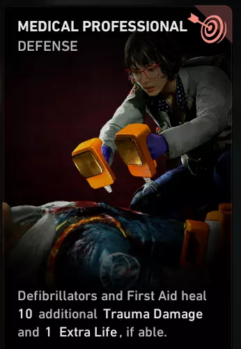 7)医疗专家 我们尚未加入随机匹配队伍,只是在观察他们。队伍里是否有治疗者或声称担任该角色的玩家?注意看他如何用急救包治疗其他玩家。如果治疗后急救包没有恢复倒地次数——那你面前就是一个想在“噩梦”难度玩治疗者的新手。 “医疗专家”是每个治疗者构筑中的第二张卡牌。如果你没把它加入卡组,那你为什么要来这里?去玩新兵难度吧。