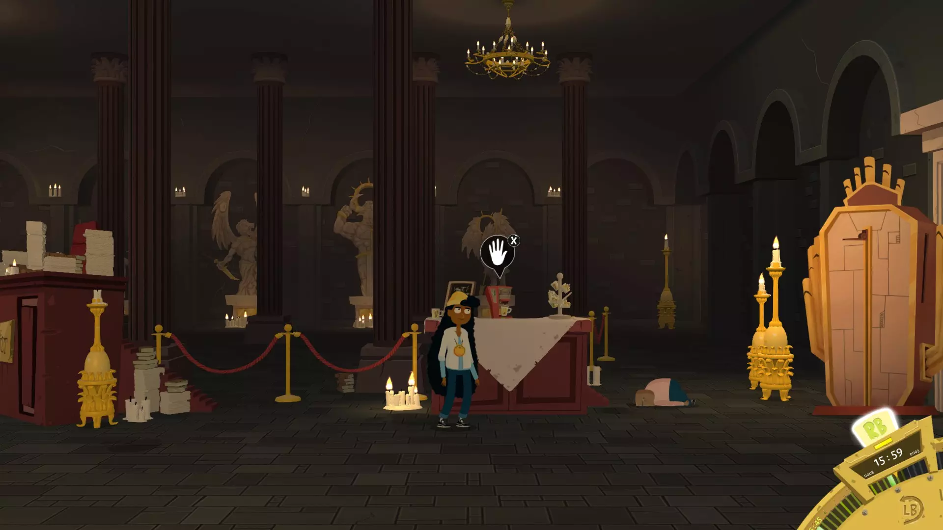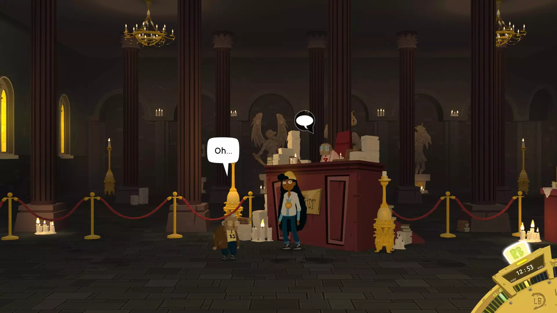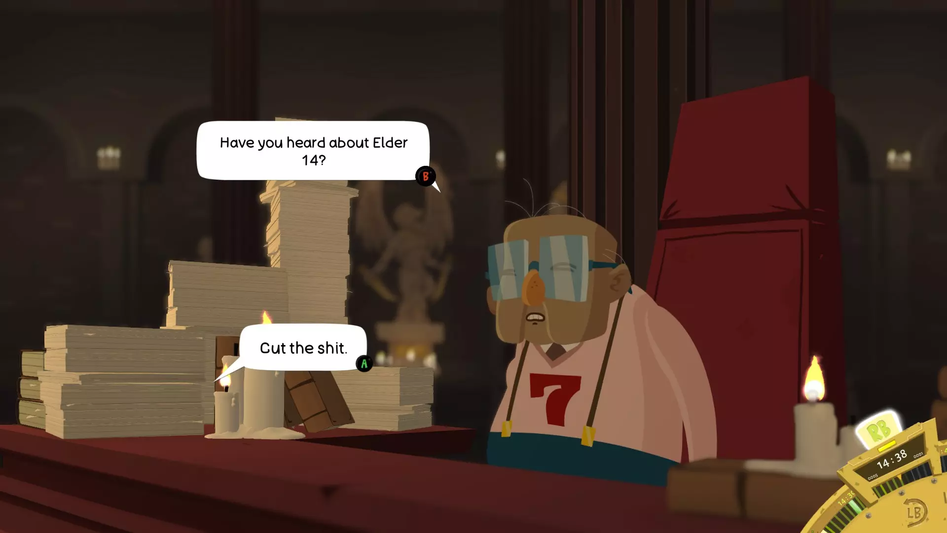 获取一些天堂币。记住10点时的那扇开着的窗户。进去后掉进洞里。在12点45分他会出现。买一张票。之后侮辱他。 长老14