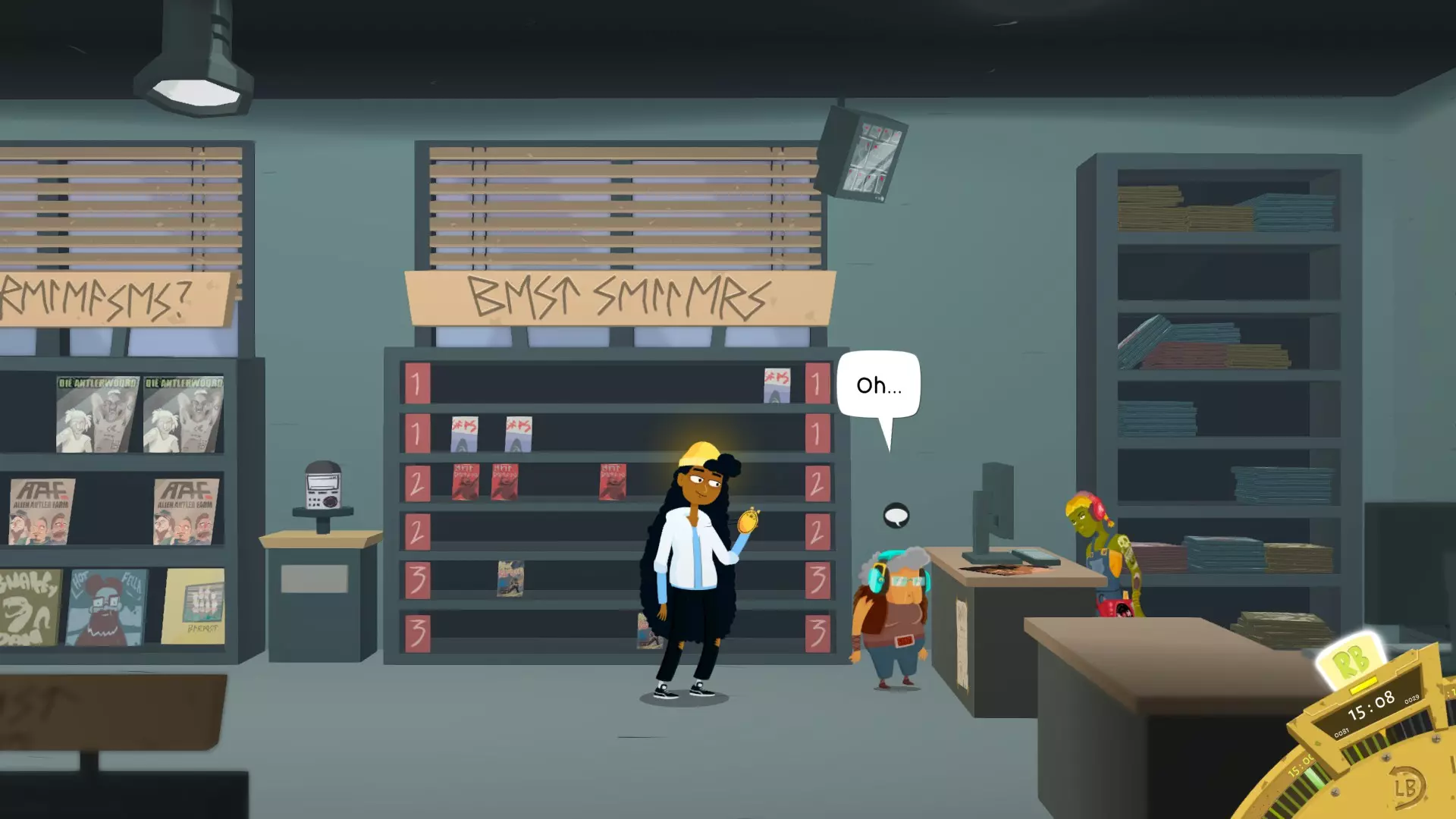 下午2点在赫尔海姆,下午3点在新纪录唱片店。戴着耳机的话,你得想点有创意的方式去嘲讽她。在新纪录唱片店录制一张专辑(这也是某个成就的重要部分),她就会买下专辑,从而被嘲讽到。我觉得你得先和她互动,看到她买专辑之后才能录制专辑。长老10