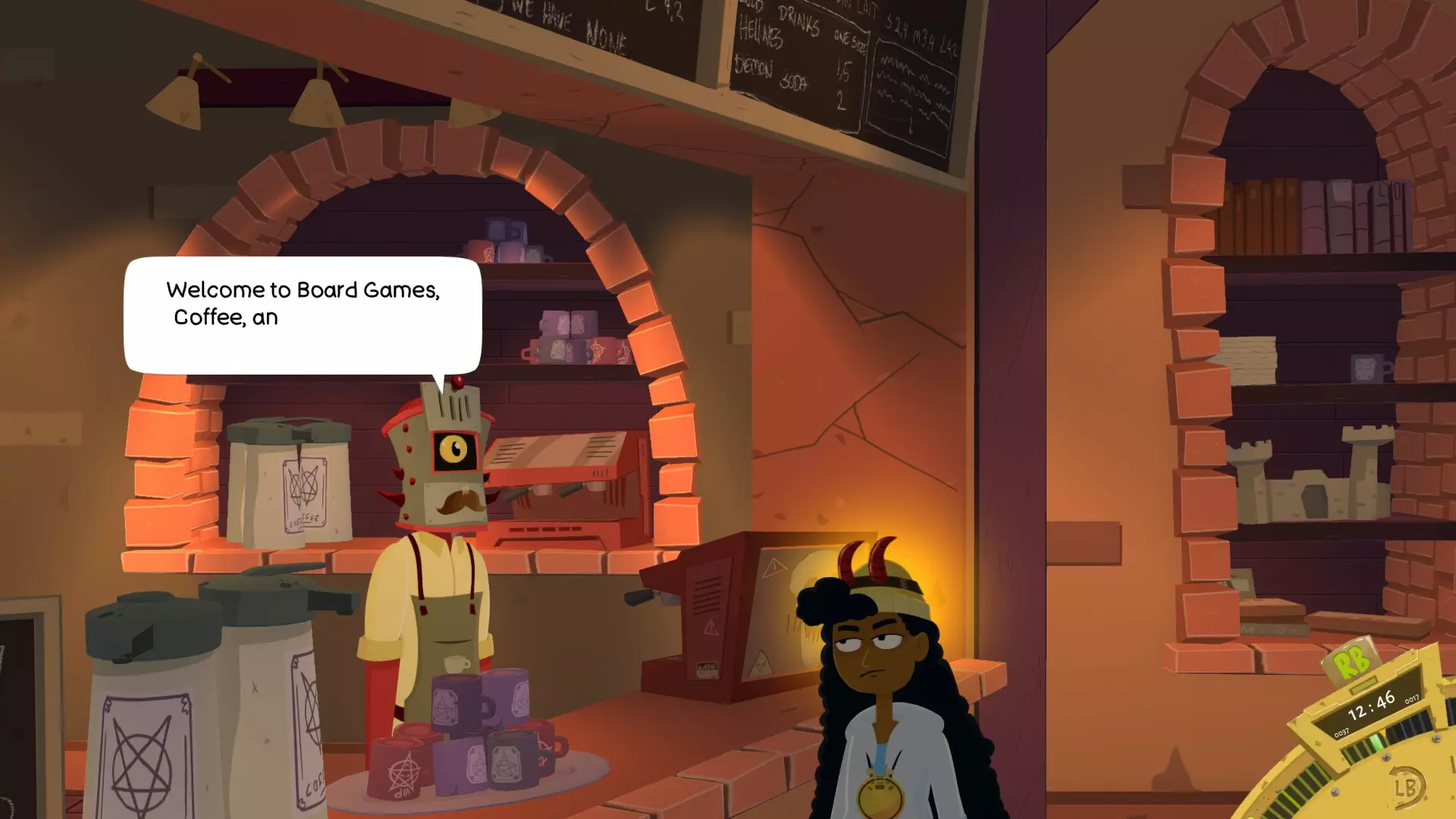 你无法在地狱里打开通往地狱的传送门(这不是明摆着的嘛),但你可以向咖啡师买一杯咖啡(需要使用地狱货币) RoboCorp