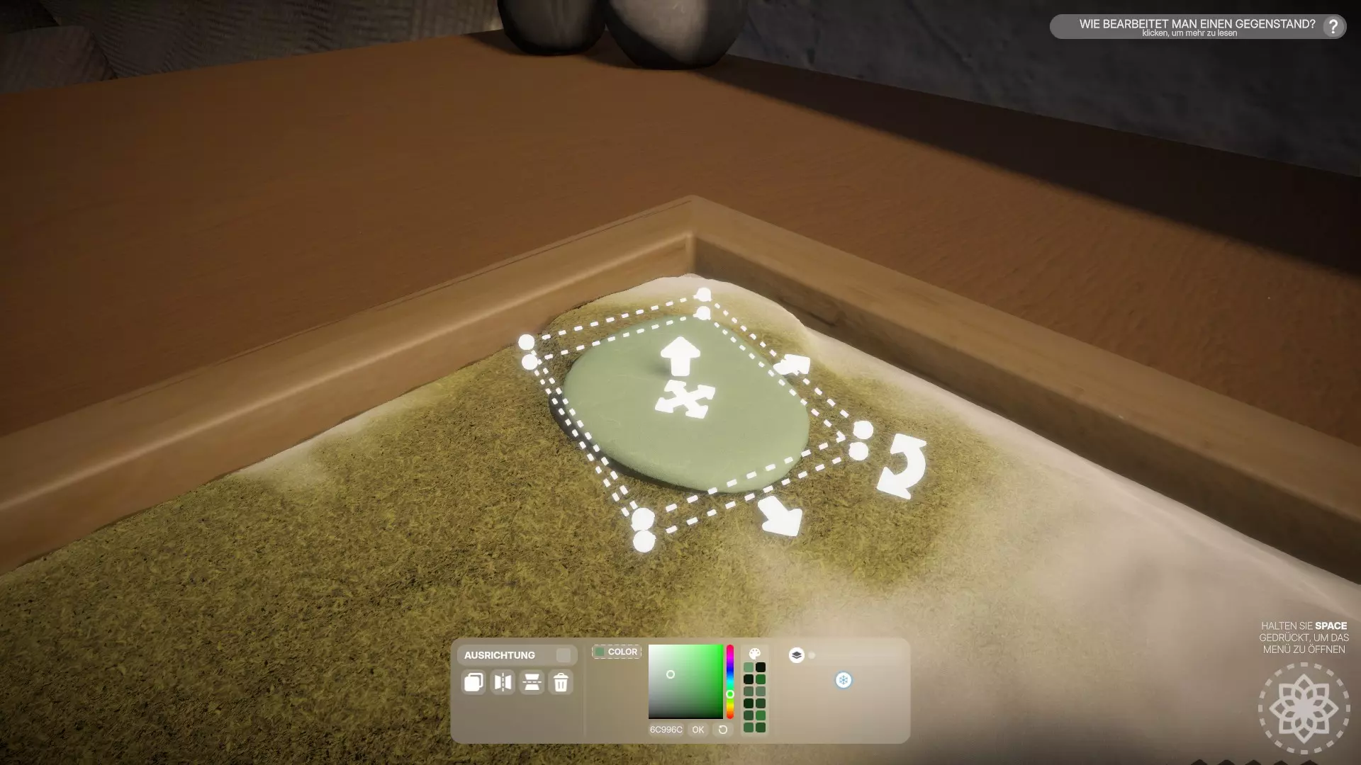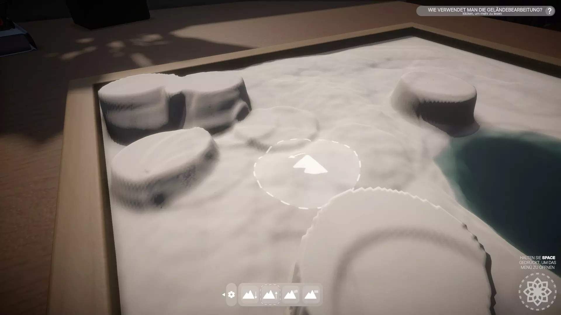 - 编辑地形10次 按住空格键打开建造菜单,选择地形编辑。然后在花园中任意点击10次——无论你是创建山丘还是池塘。重要的是只有点击才算数