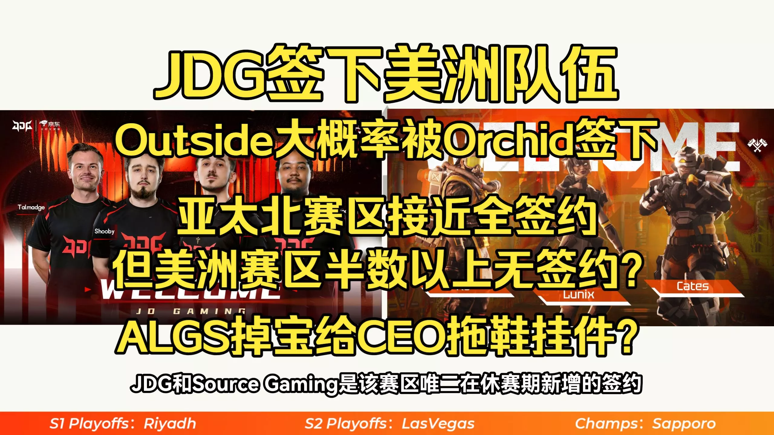 JDG签下美洲队伍,Outside即将被美洲俱乐部Orchid签下,美洲赛区面临无俱乐部签约的窘境?ALGS掉宝送CEO拖鞋挂件?