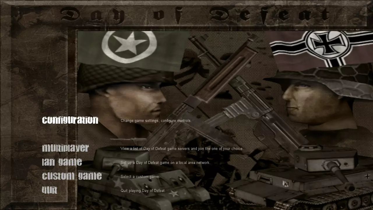 WON(世界对手网络)时代原版菜单风格合集,由我专为《胜利之日》重新制作,包含相同的字体、颜色和几乎相同的效果。 简介 众所周知,Valve去年为纪念《半条命》25周年发布了一次重大更新。在我看来,他们没有忘记这款黄金游戏并给予其应有的待遇,这非常棒。 我对WON时代原版标志性菜单的意外回归感到特别兴奋,但遗憾的是,《胜利之日》并未获得此更新,因此我决定亲自重新制作它。 胜利之日 Alpha v0.5(当时名为“欧洲战争”) 以下是一些截图,向你展示我所取得的成果: 1. 原版WON菜单(点击可查看完整图片)