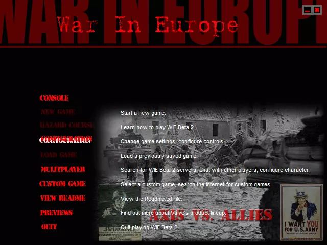 胜利之日 Alpha v2.0(当时名为“欧洲战争”) 1. 原始WON菜单(点击可打开完整图片)