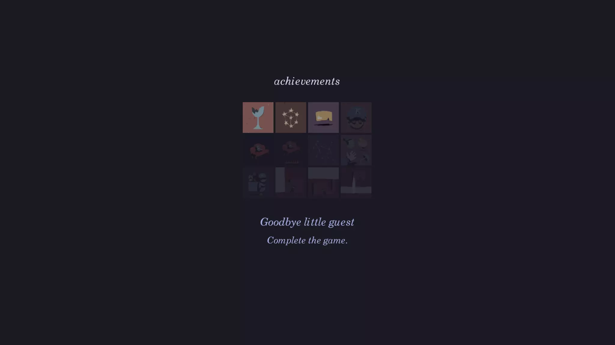 成就 成就通过完成其描述中的特定任务来解锁,但不会对游戏玩法产生影响。每个成就都有自己的获取方式说明。