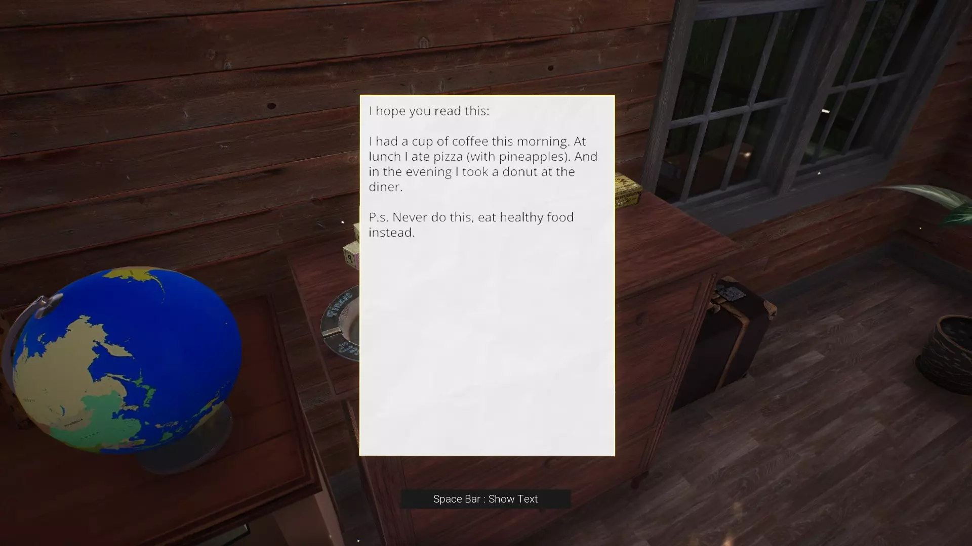 这座房子简直像个博物馆! 解锁100%的收藏品(照片、文件、牛奶盒、雪花球、飞蛾、过场动画)。游戏中共有33份文件、5张照片、15个牛奶盒和25个雪花球可供收集。你还需要将所有能力提升至满级。你无需在一次游戏流程中收集所有物品,但如果你收集到某样物品后死亡或重新加载检查点,可能需要重新获取该收藏品。游戏过程中,切勿跳过任何过场动画或 credits,因为你需要观看所有这些内容才能获得此成就及另一成就。我还包含了我发现的所有飞蛾钥匙的位置。 序章 雪花球(1/25) 一旦你开始控制詹妮弗,立即转身并打开你身后的门(你可能需要稍微移动一下,直到 HUD 出现)。看向你的左侧,在X光片墙前找到地球仪,用射钉枪射击它。 牛奶盒(1/15) 在地球仪位置向左转,走到走廊尽头,就能看到牛奶盒。 第一章 飞蛾钥匙 与阿什曼先生交谈后,跟随安德里亚穿过一扇门,但不要走向楼梯。相反,从门口直走,在自动售货机顶部可以找到它。 牛奶盒(2/15) 跟随安德里亚上螺旋楼梯,一直爬到顶楼,在垃圾桶顶部找到这个牛奶盒。 文档(1/33) 回到安德里亚穿过的那扇门,触发过场动画。之后,看向你右侧的梳妆台。 飞蛾钥匙 在你床右侧的架子上。文档(20/33) 再次离开餐厅,阅读门外的粉笔板菜单。 第三章 牛奶盒(7/15) 第三章一开始,向右转进入楼梯旁的小巷,查看垃圾桶后面。 雪花球(10/25) 向前走,会看到 Linn 在草地上打篮球?先不要靠近她。相反,看向你的右边,在斧头附近找到一块砖头。用它来砸碎你旁边桌子上的雪花球。 飞蛾钥匙 爬下传菜电梯井后,在爬过货架下方之前,查看你右边的瓦砾。 文档(21/33) 爬过货架下方,查看饮水机旁边墙上挂着的图片。 飞蛾钥匙 在饮水机旁边桌子上的笔筒里。牛奶盒(8/15) 离开该区域后,你会回到游戏开始的地方。你会看到桌上有一台电视,左边是一根支撑柱。继续走过柱子,会看到一张桌子,上面有笼子和煤气罐,前面是一扇大窗户。牛奶盒就在这张桌子左侧的柜子里。 飞蛾钥匙 在房间右侧的一个桶上(以我们进入的方向为准),它在一个垃圾桶后面。 文档(22-24/33) 打开灯后(并事先收集好其他所有物品),你可以找到3份推进剧情所需的文档。第一份在电视前面,靠近通往接待处的门。从那里向右走,经过垃圾桶,会在鸟笼旁边的墙上发现一系列文件,第二份笔记就在那里。第三张也是最后一张笔记位于房间的对面,在存档镜子旁边的支撑柱上。 飞蛾钥匙 进入隐藏门后,向右走,在地板上的一个笼子顶部可以找到它。 飞蛾钥匙 这次向左走,会看到手推车和梯子旁有一排4个文件柜。钥匙在最后一个文件柜里。 飞蛾钥匙+雪花球(11/25) 从文件柜出发,继续沿着同一方向走,直到看到左侧有一排水槽,右侧有一部旋转电话。钥匙在第一个水槽里,雪花球在电话旁边的金属架子顶部。你可以使用飞蛾能力打破它。 牛奶盒(9/15) 继续走过电话,会看到右侧有一扇双开门,左侧有一系列架子。牛奶盒就在架子上。飞蛾钥匙 纸箱对面是另一张放着笼子的桌子。蹲下并查看柜子内部以找到钥匙。 飞蛾钥匙 进入放映室并面向放映机本身。查看你右侧第一排座位下方。 雪花球(12/25) 仍然面向放映机,进入飞蛾视觉并查看你左侧第二排座位下方。 文档(25/33) 现在面向放映屏幕,查看房间前方的讲台后面。 飞蛾钥匙 再次面向放映机,前往后左角。 文档(26/33) 进入那个由一个慷慨的玩具娃娃为我们揭示的下一个秘密房间。在这个房间大约中途位置,左侧有一堆衣服,墙上挂着这张便条。如果你走到了有收音机的桌子那里,说明你走得太远了。飞蛾钥匙 在收音机旁的椅子上。 第四章 雪花玻璃球(13/25) 章节一开始,不要跟着詹妮弗。相反,向左走,在各个抽屉里找到可投掷物品。沿着这条走廊一直走到尽头,你会看到一盏亮着的灯。雪花玻璃球就在灯下面。 牛奶盒(10/15) 爬过小洞进入阿什曼的办公室后,向右看,在桌子上可以找到这个。 雪花玻璃球(14/25) 现在回到詹恩的控制视角,立即看向最远的储物柜顶部,能看到一个雪花玻璃球。我们现在拿不到它,但要记住那个位置。当你摔倒在地再站起来后,可以走回去用射钉枪射它。雪球(15/25) 完全充能飞蛾之力后,移动到更衣室右上角有通风口的位置。使用能力进入通风口,你会立即看到雪球。在解救琳恩之前打破它。 飞蛾钥匙 在通风口旁的打开的储物柜内。 雪球(16/25) 击败瓷娃娃后,不要靠近后排乘客侧车门。进入飞蛾视觉,进入房间左侧的通风口即可找到雪球。 飞蛾钥匙 从车库入口处向左看,在工作台上可以找到,位于伊莉莎蜷缩位置的对面。 牛奶盒(11/15) 就在钥匙旁边,左侧通风口下方的木箱上。 文档(27/33) 前往前排乘客侧车门,向车内查看可找到一张驾照。如果你与后门互动,将会离开该区域并错过收集品。 第五章 文档(28/33) 从轮椅上挣脱后,查看大厅左侧的沙发。 文档(29/33) 还记得游戏前期的阿什曼房间吗?前往那里,向右看会发现一个保险箱。与保险箱旁边的红色书本互动。 文档(30/33) 在阿什曼的床的左侧。 文档(31-32/33) 打开保险箱,里面有这2份文件。 雪花球(17/25) 现在我们有枪了,回到之前用轮椅撞开的那扇门,但不要进去!而是沿着大厅向右走。在尽头有一个书架,上面的雪花球需要我们射击获取。 牛奶盒(12/15) 打破锁链,进入休息室。前往安德里亚过去常坐的位置,在鸟笼下方寻找纸盒。小心,波塞
