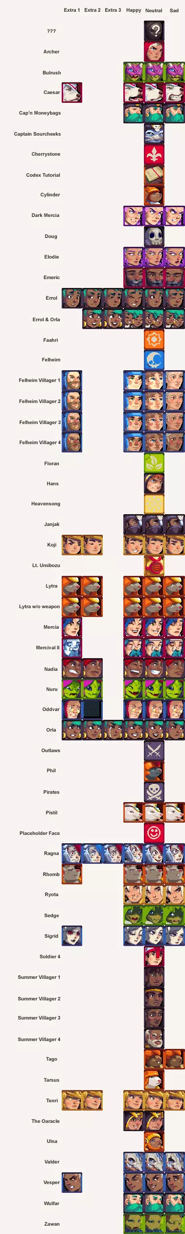 游戏中所有头像均用于对话框。 头像 游戏内部分头像是隐藏的,仅能通过解锁特定功能的模组获取。目前此类模组尚未发布。
