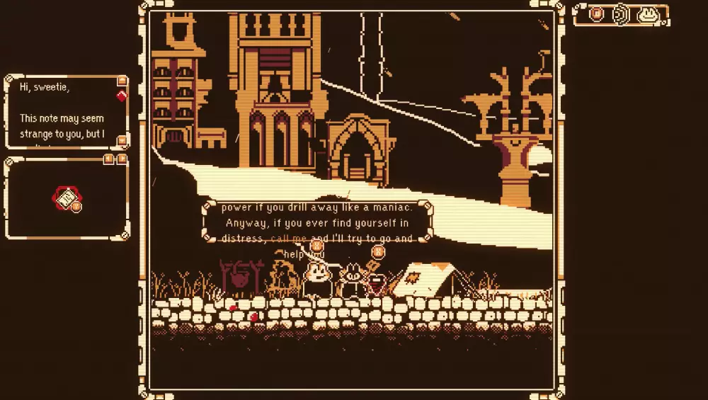 7)一直挖掘,直到找到呈三角形的魔像神庙。与瑞比特交谈后在营地存档。离开前获取最后一块碎片,它应该就在营火的正上方!