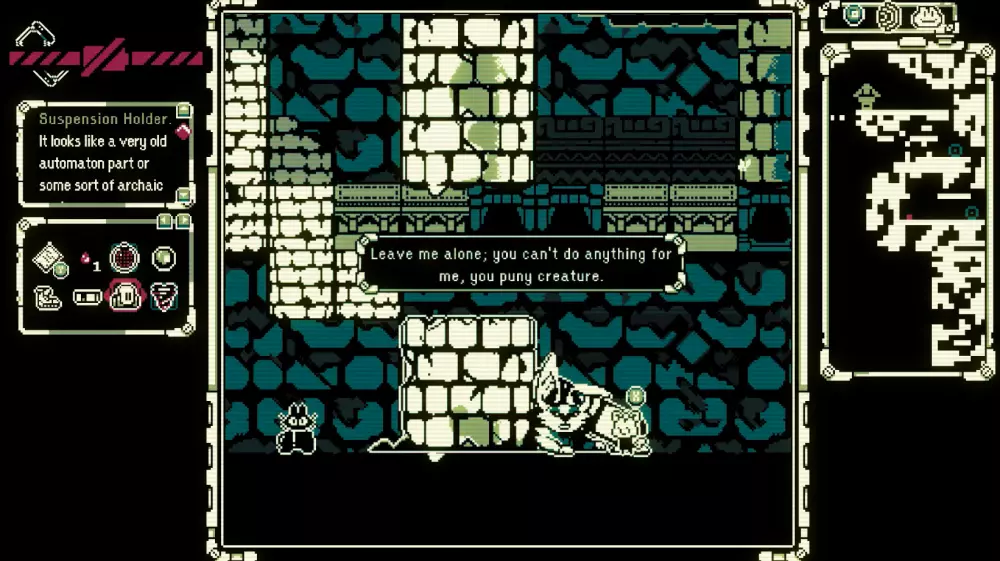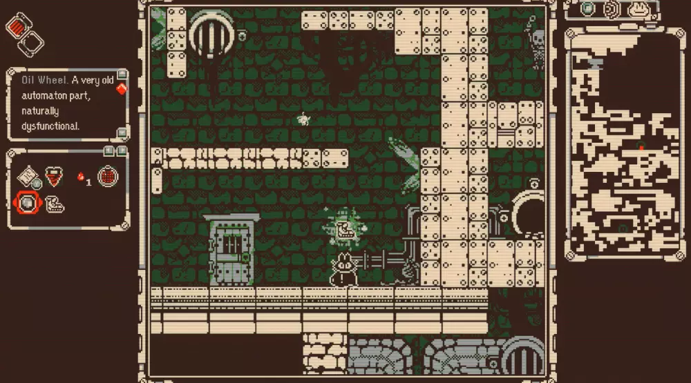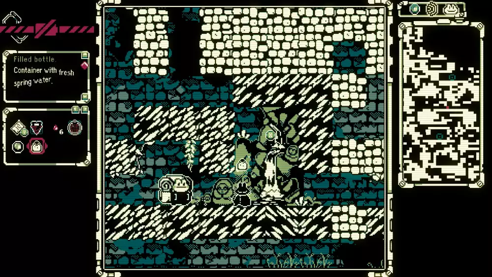 3)前往泉水处,靠近时你会听到流水声。瑞比特会给你地图和水。离开前,获取泉水上方的第一个魔像部件。如果可以的话,可能不在附近:找到第二个部件,它在老鼠和暗室附近的冒烟魔像旁边。瓶子: