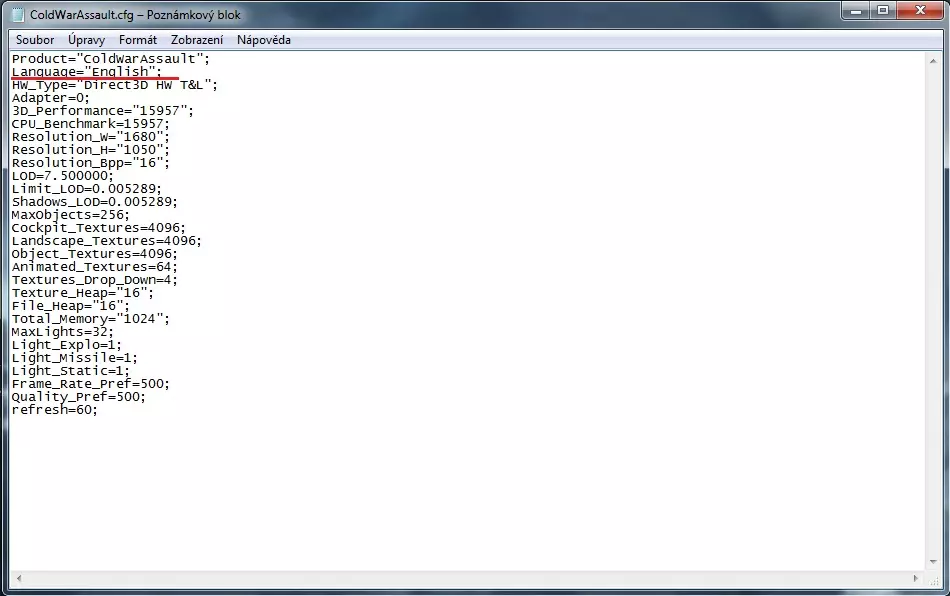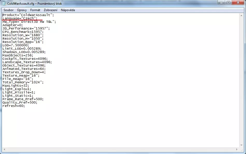 《武装突袭:冷战突击》默认设置中没有捷克语选项。不过游戏内存在捷克语字幕,好在有一个简单的启用方法,具体步骤如下: 教程 在游戏的主文件夹(标准路径为C: Program Files (X86) Steam steamapps ARMA Cold War Assault)中,首次以英语启动游戏后,会出现ColdWarAssault.cfg文件。用记事本或其他编辑器打开该文件,找到Language="English";这一行,将"English"改为"Czech"。保存更改后,下次启动游戏时就应该是捷克语了。