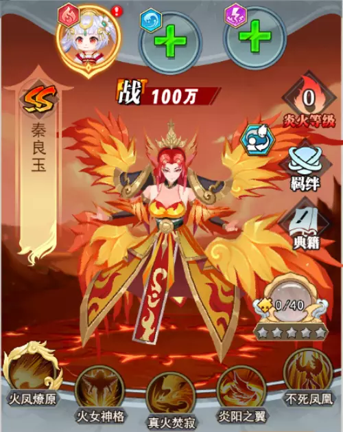 专属技能:火凤燎原、火女神格、真火焚寂、炎阳之翼、不死凤凰