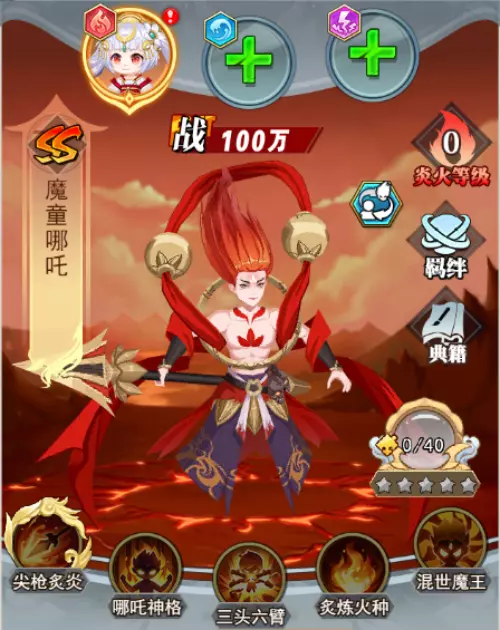 专属技能:尖枪炙炎、哪吒神格、三头六臂、炙炼火种、混世魔王