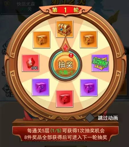 3、每通关五层可获取一次抽奖机会,8件奖牌都获得后进入下一轮抽奖!