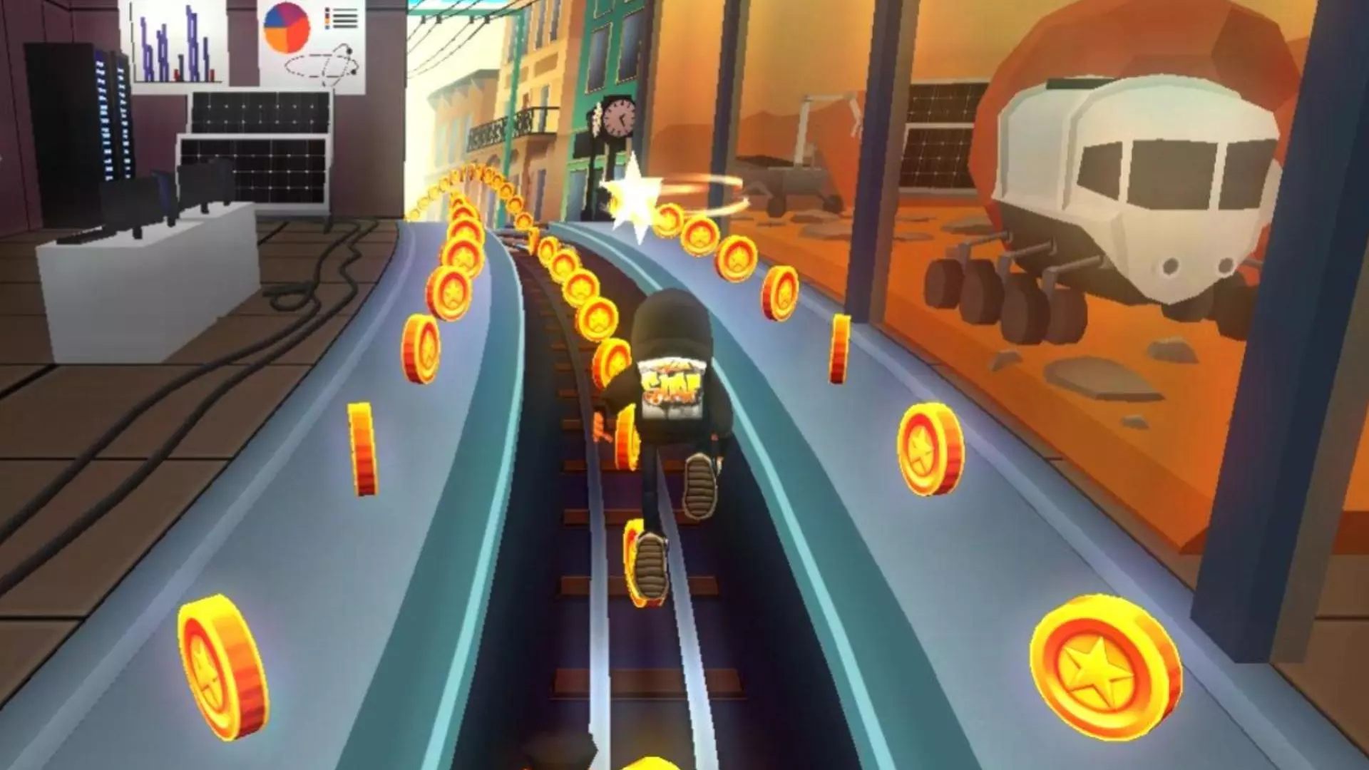 《地铁跑酷》中的杰克收到奥斯汀的邀请函,他跳下地铁轨道,准备前往梦幻花园开启探险之旅,邀请跑酷者跟随他一起探索花园的乐趣。
