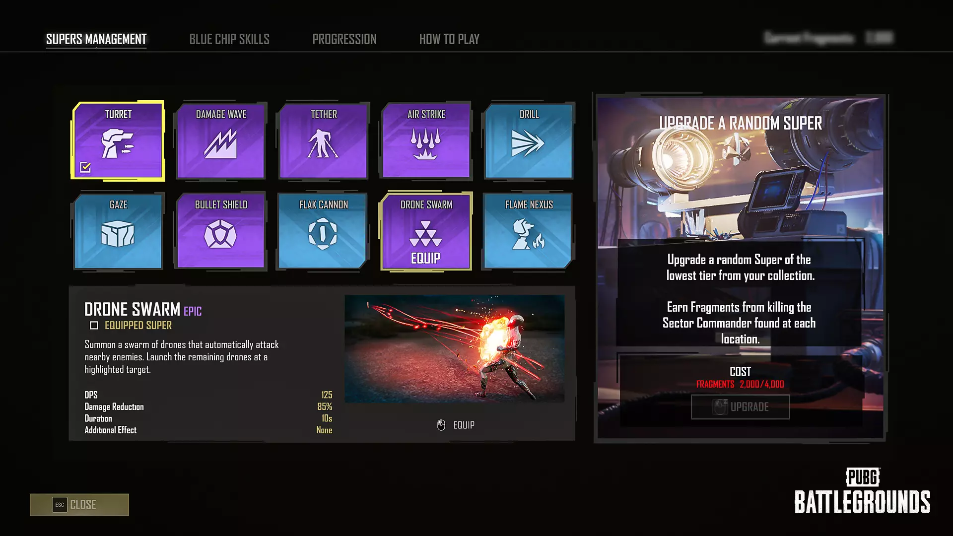 玩家可在枢纽的制作站使用碎片制作和升级超级技能。集齐一整套后,超级技能可进一步升级。制作或升级时会随机选择一个可用的超级技能。购买蓝晶技能