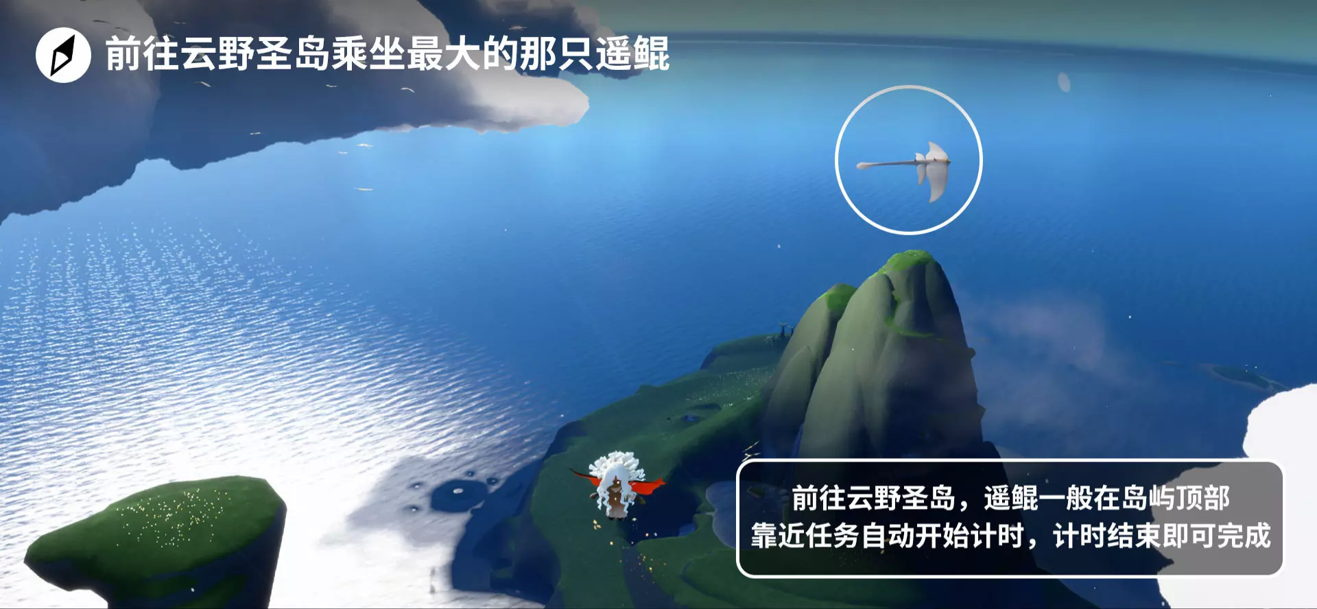「前往云野圣岛乘坐最大的遥鲲」前往圣岛主岛高处,靠近并乘坐最大的遥鲲完成任务