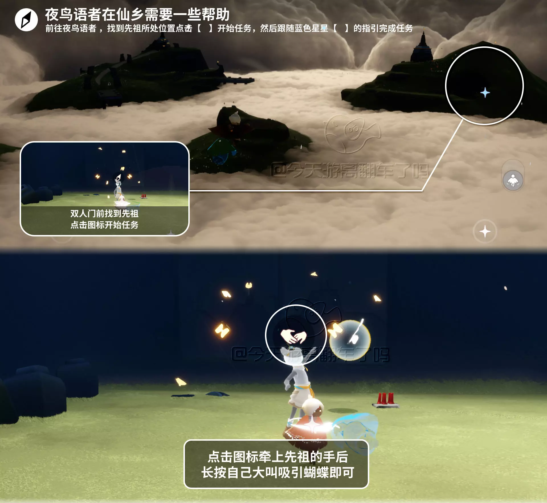 「夜鸟语者在仙乡需要一些帮助」前往云野仙乡找到夜鸟语者,按指引完成任务流程
