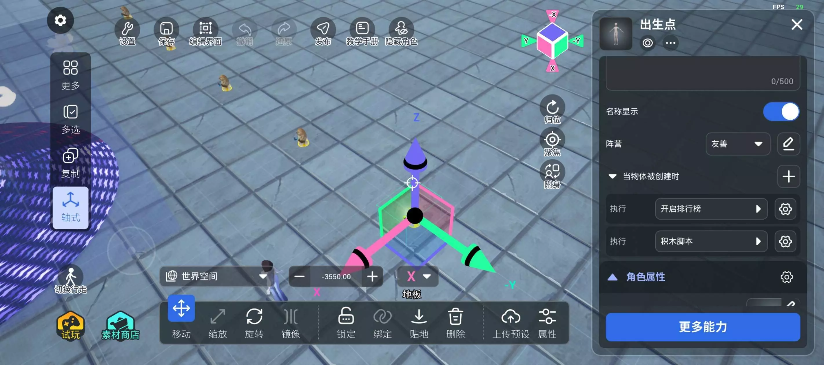 2. 我们需要在【出生点】当被物体被创建时下新增一个积木脚本