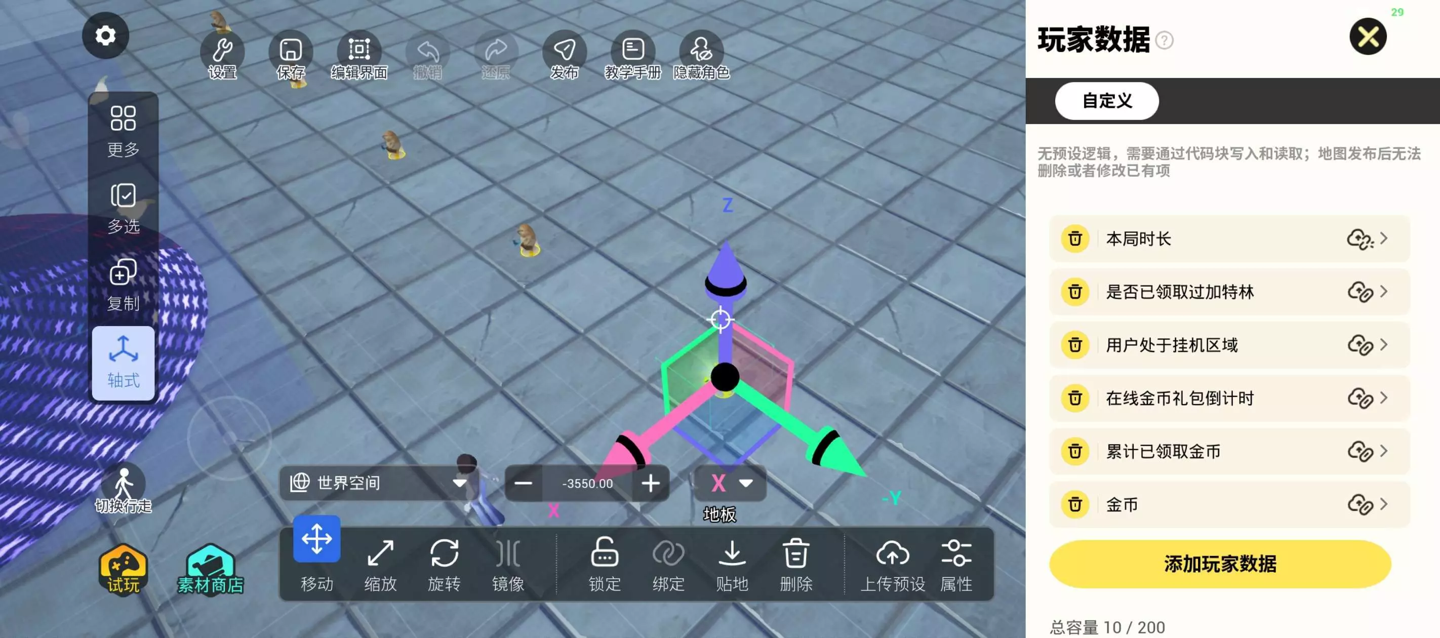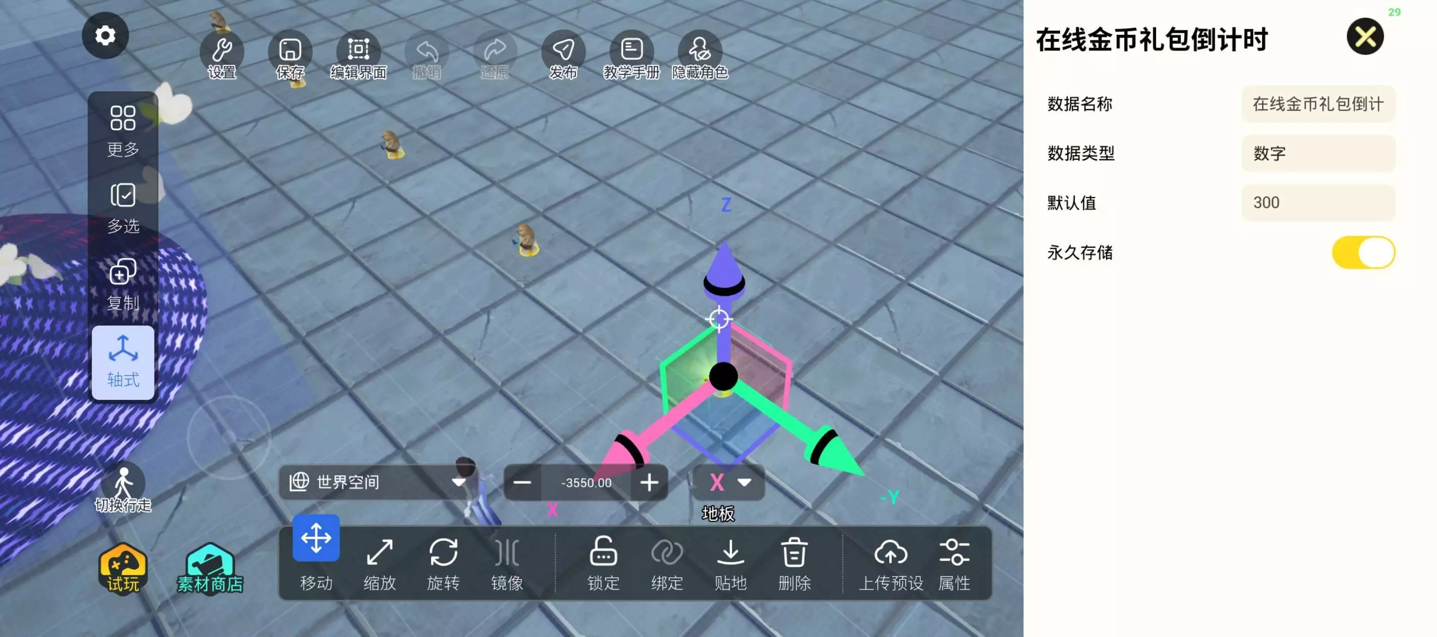 1. 首先我们需要在玩家数据中新增一个【数字类型】的数据,用来当做倒计时