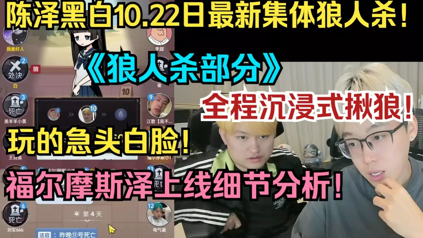 ⚡陈泽黑白10.22日最新《狼人杀部分》!全程沉浸式揪狼!福尔摩斯泽上线细节分析!依旧爆笑堪比鹅鸭杀!太空狼人杀!⚡陈泽直播回放名场面!