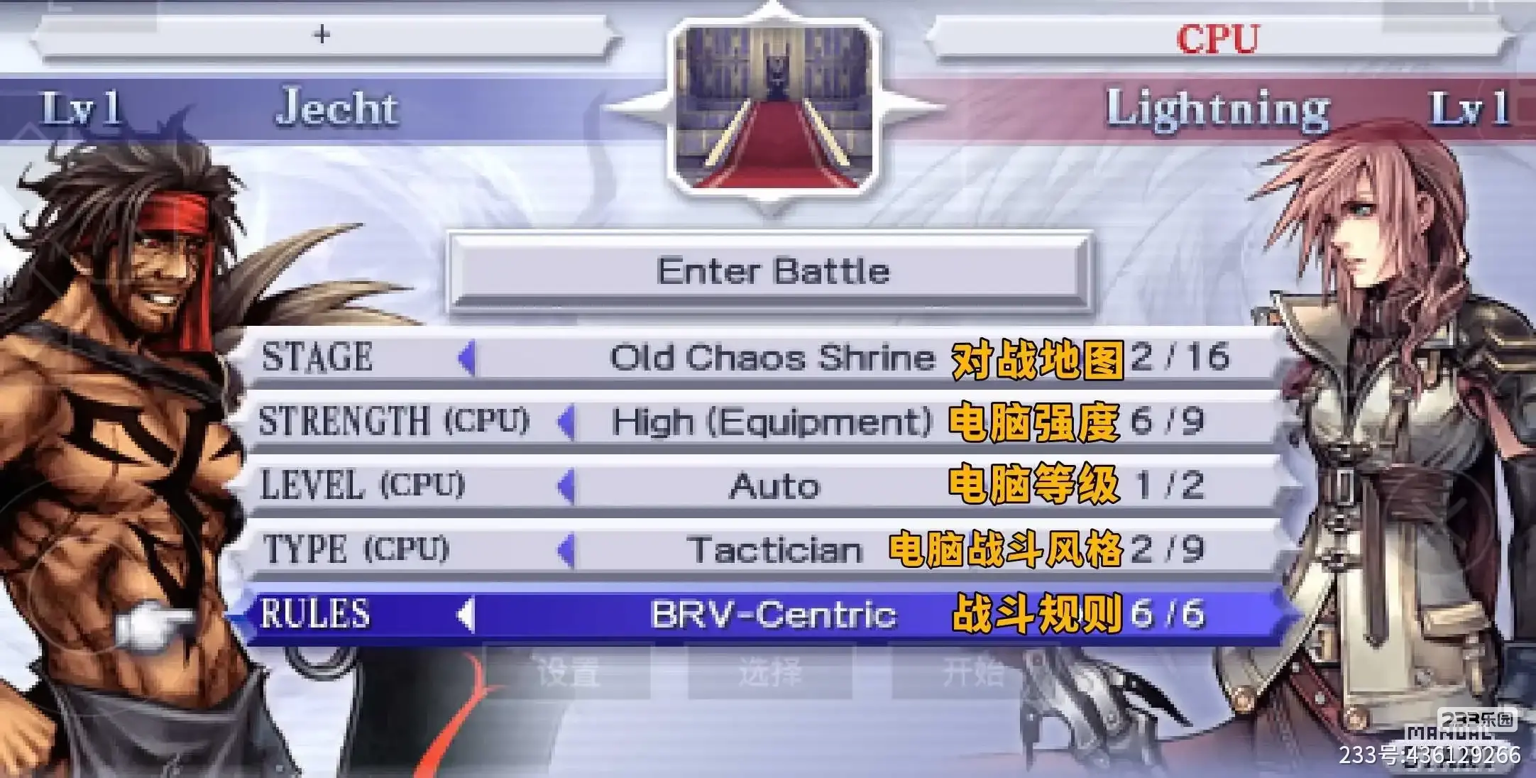 电脑等级:字面意思,如果是Auto(自动)的话,电脑的等级就会和我们选择的角色等级一样;当然如果你手动选择等级,电脑可选择的等级最高只能和我们选择的角色等级一样,如下图我选的角色(左边)是1级,那电脑的等级就只能选择自动或者1级