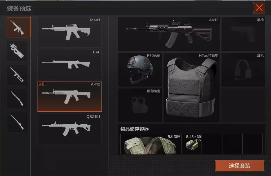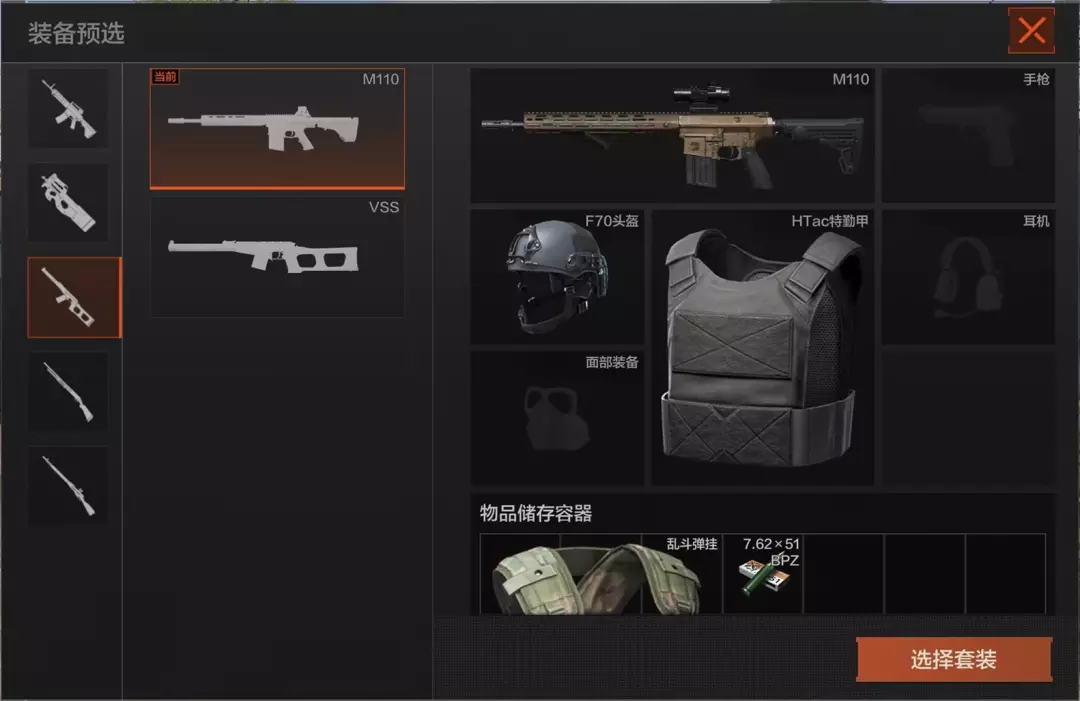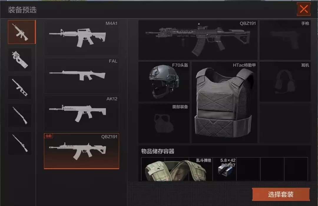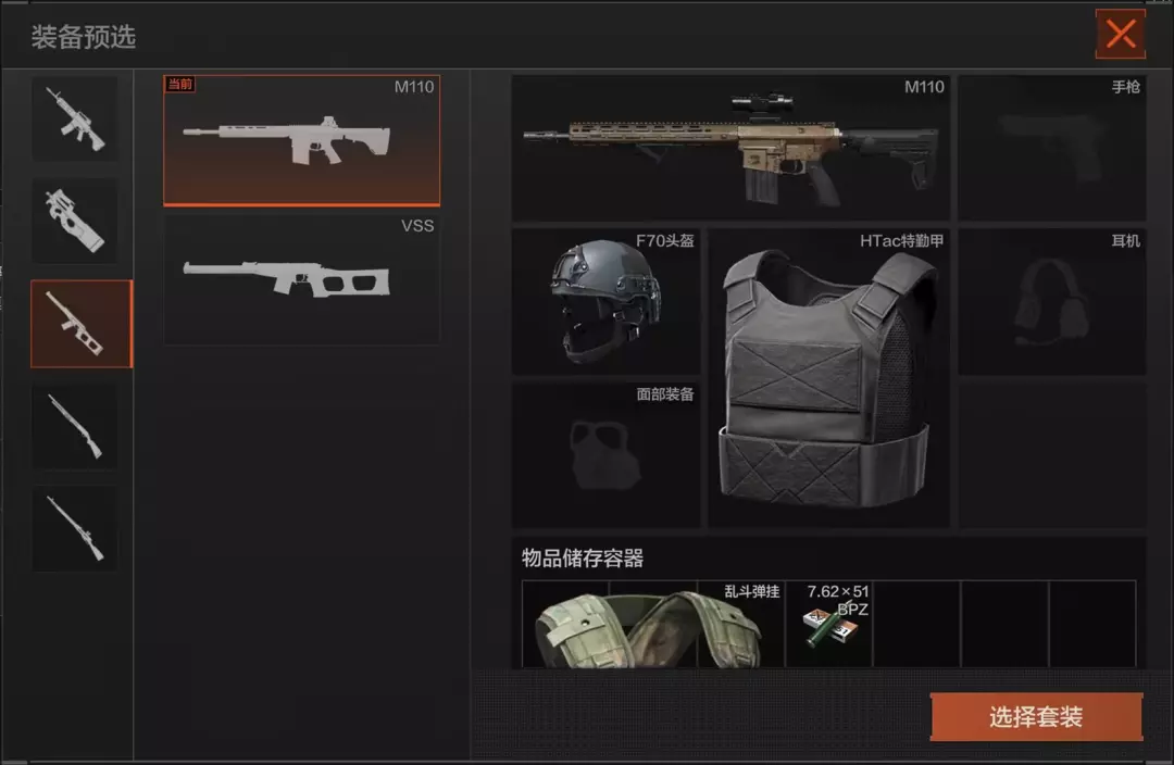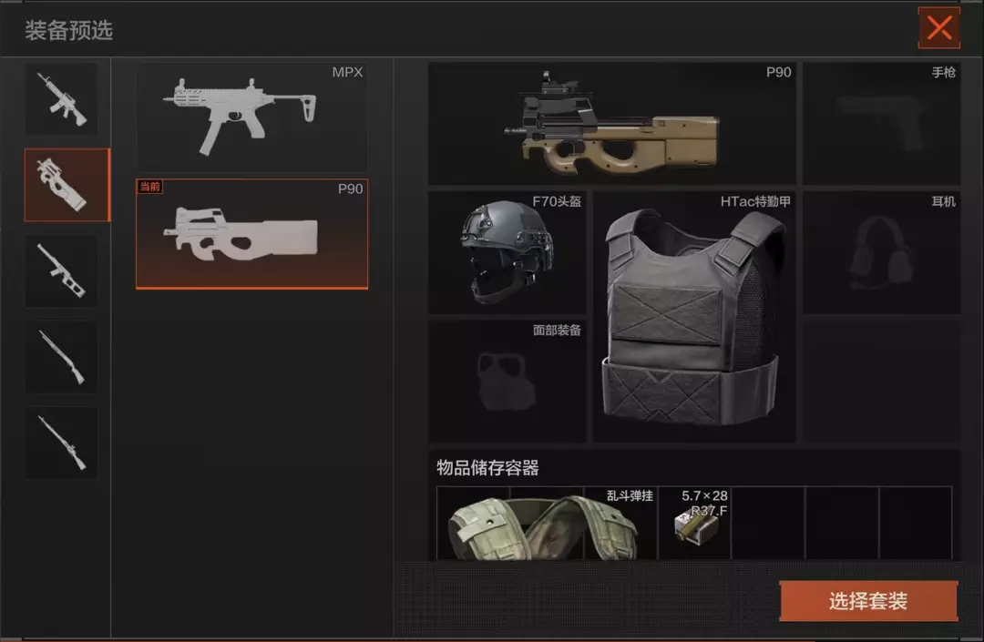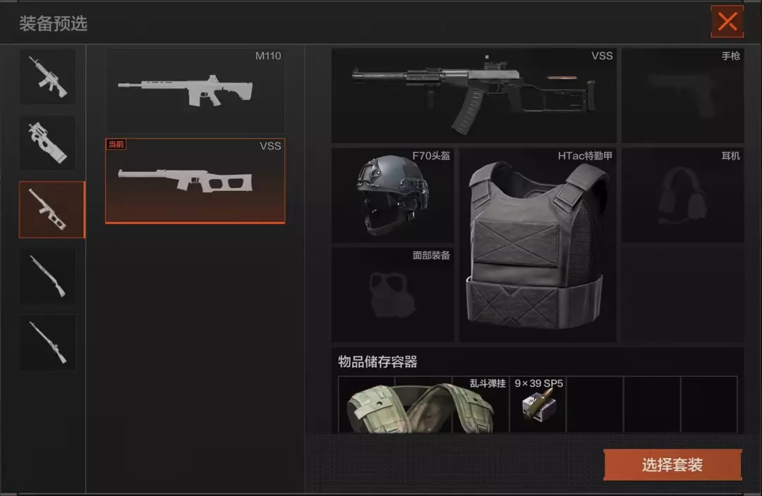 进入对局后,先锋可以选择预设套装进入对局进行战斗!预设套装可滑动下方图片查看。
