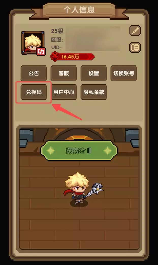 4、兑换码入口指引