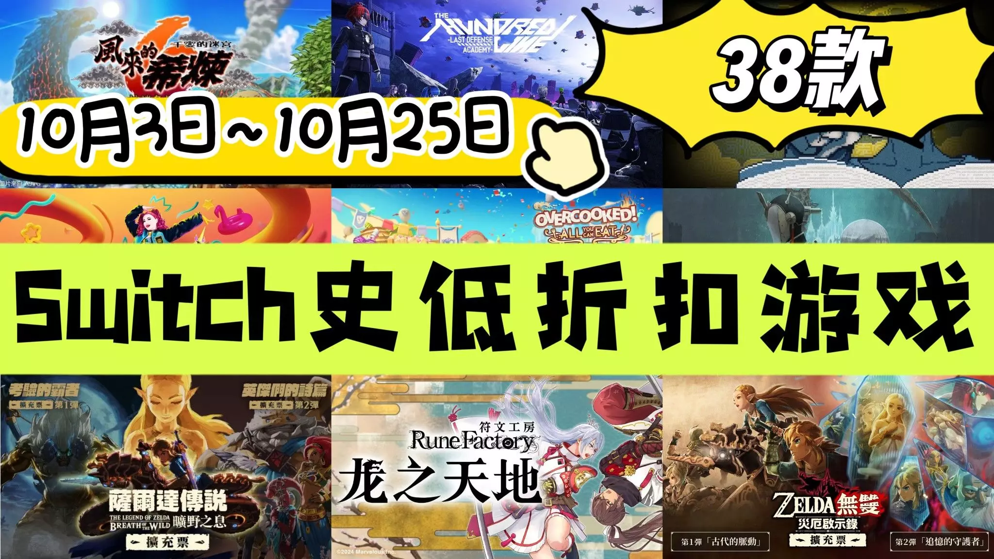 一起来看看Switch最近有哪些好玩游戏正在史低折扣吧! 00:07 本周精选推荐: ✨巫师3 狂猎 The Witcher 3 ✨无人深空 No Man's Sky ✨上古卷轴5 天际 周年纪念版 The Elder Scrolls V - Skyrim Anniversary Edition ✨宿命残响 Chained Echoes ✨赛博朋克2077 终极版 Cyberpunk 2077 Ultimate Edition ✨动物井 Animal Well ✨暗黑破坏神 万恶之源珍藏组合 Diablo Prime Evil Collection ✨潜水员戴夫 Dave the Diver 02:31 MC80分以上推荐: ✨隐迹渐显 Pentiment ✨薄暮传说 重制版 Tales of Vesperia REMASTER ✨AI 梦境档案 AI - The Somnium Files ✨AI 梦境档案 涅槃开始 AI - The Somnium Files - nirvanA Initiative ✨小骨 英雄杀手 Skul - The Hero Slayer ✨索尼克 狂欢 Sonic Mania ✨迷失游戏 Lost in Play 04:18 多人游戏精选: ✨蔷薇与椿 豪华绚烂版 Rose & Camellia Collection ✨长号冠军 Trombone Champ ✨海贼无双4 豪华版 One Piece - Pirate Warriors 4 - Deluxe Edition ✨暴走大鹅 Mighty Goose ✨英雄连 合集 Company of Heroes Collection ✨赛马娘 热血喧闹大感谢祭!Umamusume - Pretty Derby - Party Dash 05:59 特别好评推荐: ✨零 月蚀的假面 Fatal Frame - Mask of the Lunar Eclipse ✨逃生2 Outlast 2 ✨赤痕 夜之仪式 Bloodstained - Ritual of the Night ✨尘埃终须落定 No Case Should Remain Unsolved ✨巴别号漫游指南 A Guidebook of Babel 07:27 20元以下超值特惠: ✨最后的篝火 The Last Campfire ✨纸间谜迹 Paper Trail ✨侍神大乱战 Samurai Bringer ✨只只大冒险 Biped ✨残酷北方 Bad North ✨尼可梦 Nexomon 08:57 省流版