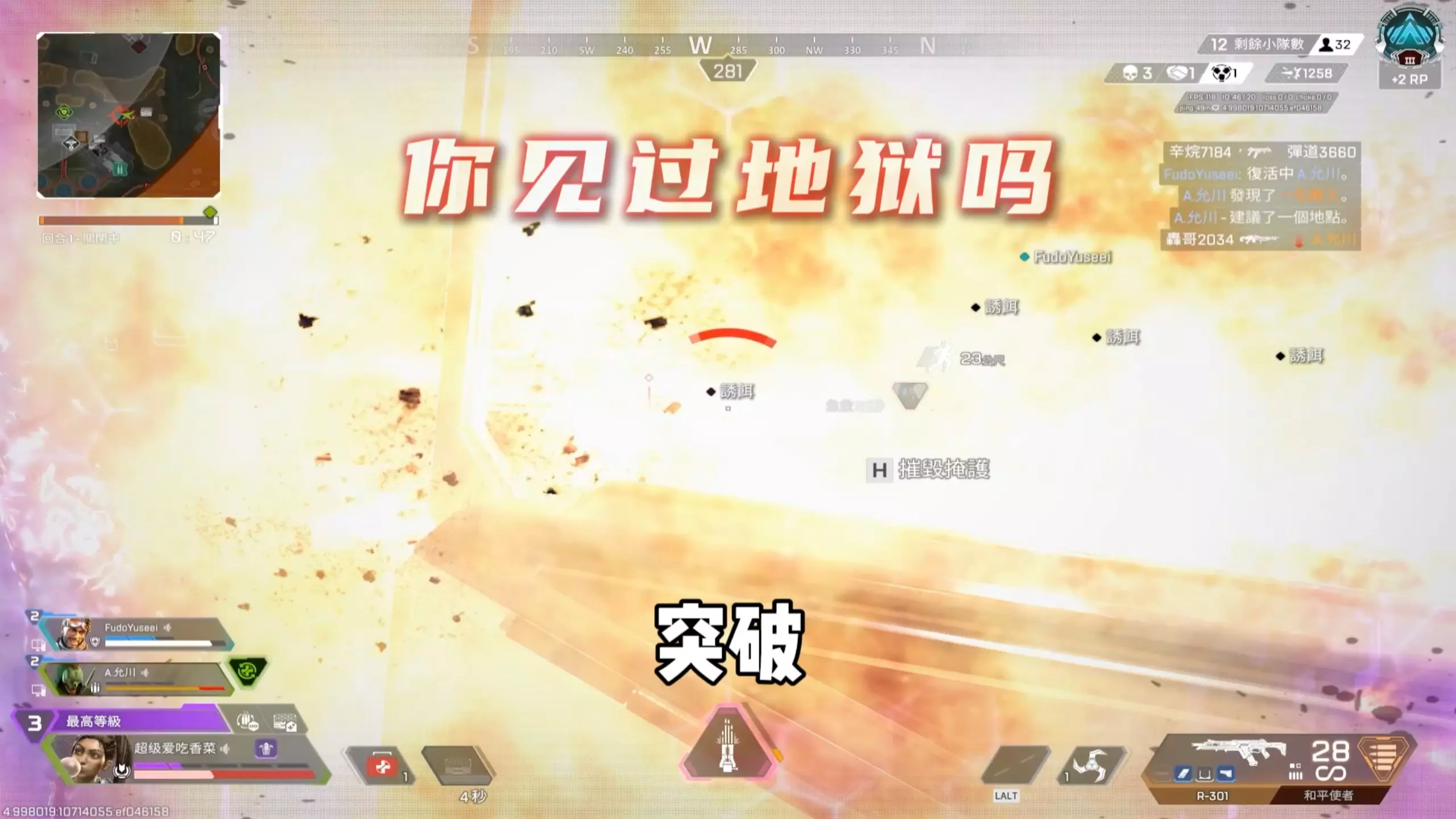 这是APEX英雄的游戏对局内容,玩家分享了自己小队在游戏里被敌方4次针对攻击的对局片段,过程里有战斗、队友倒地等惊险的游戏场景。