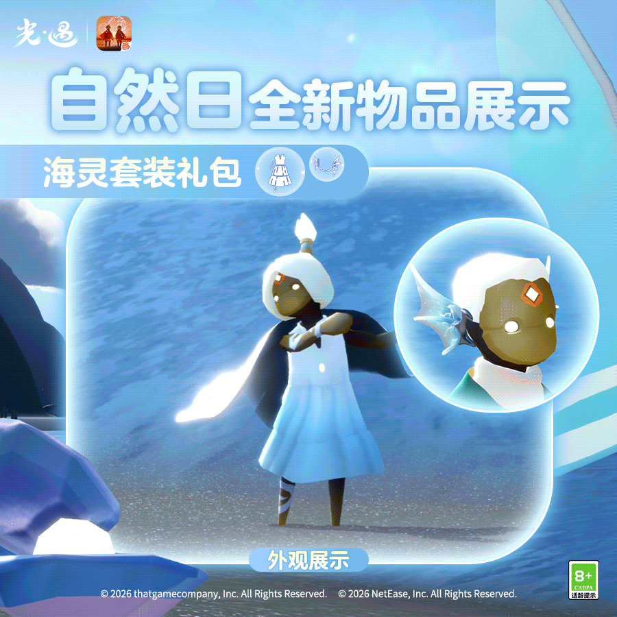 《光·遇》自然日将于4月16日开启,推出海灵套装礼包等海洋主题新装,活动以净海护生为主题,玩家可身着新装参与守护海洋的活动,《光·遇》曾获多项国际游戏大奖。