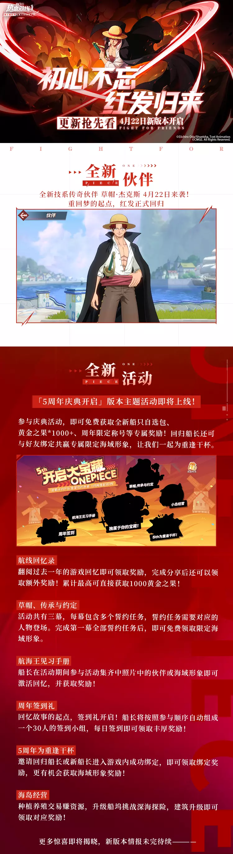 重回梦的起点,全新版本五周年庆「初心不忘 红发归来」将于4月22日登场!