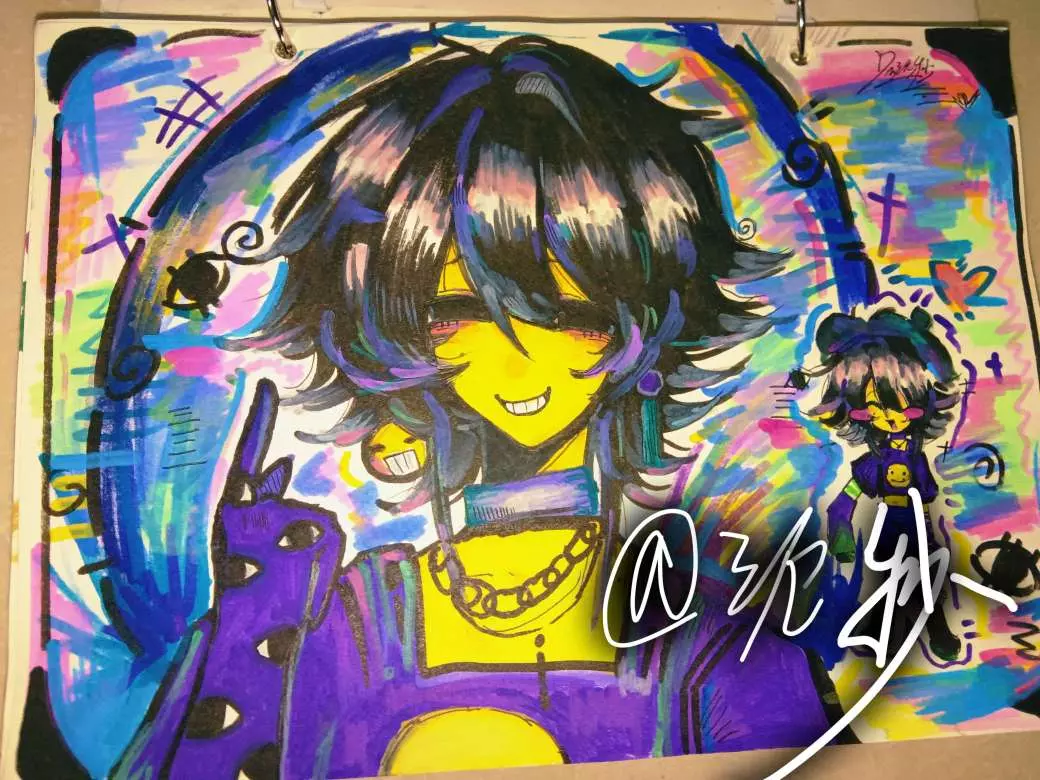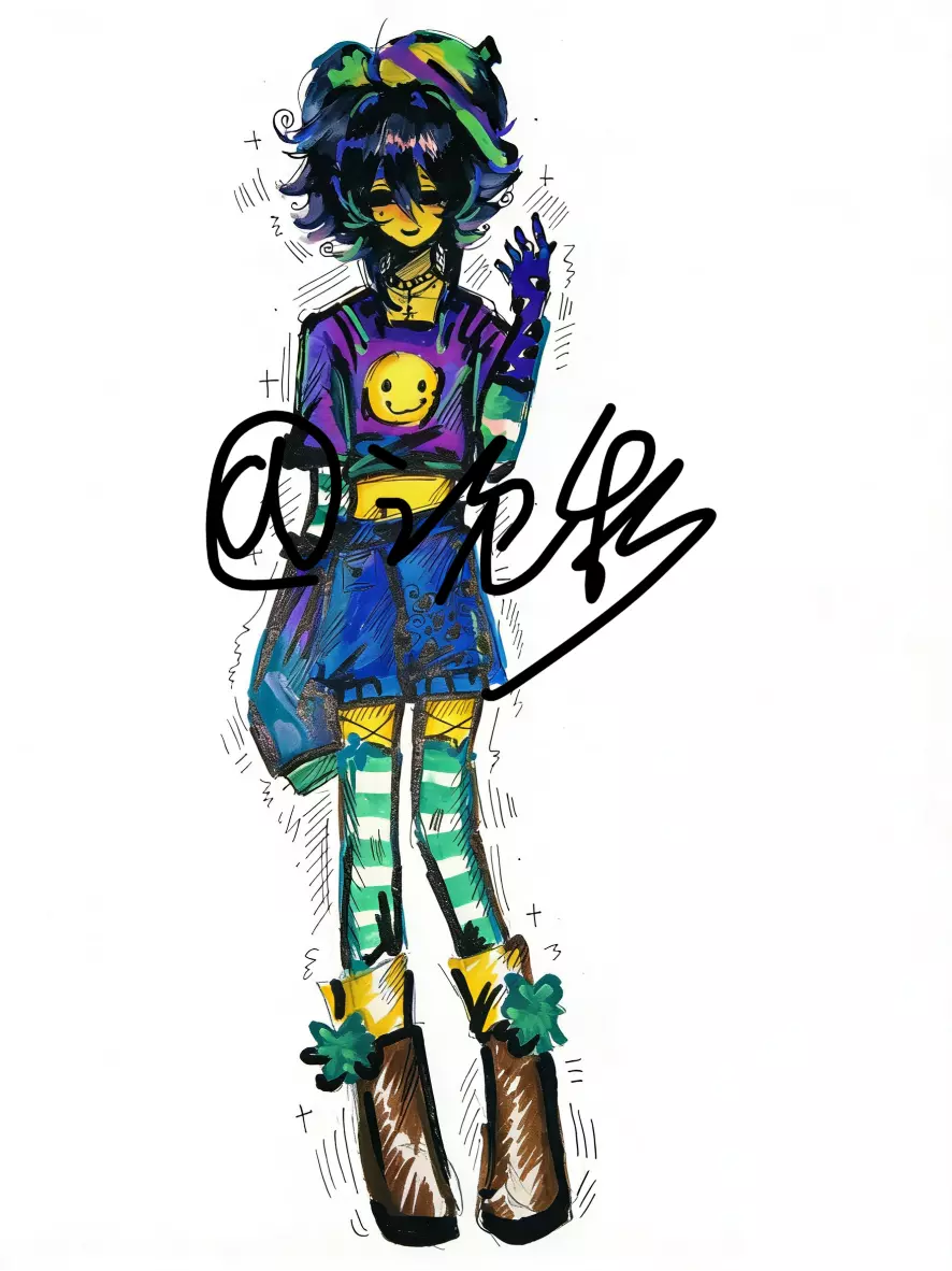 这是作者摸鱼创作的指绘OC原创角色作品,展示了该原创角色不同创作形式的多幅画作,用色大胆个性鲜明,呈现出独特的原创人设形象。